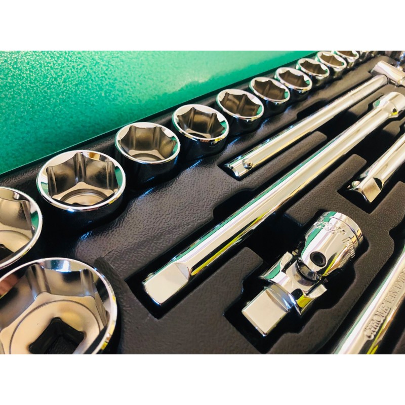 | Steckschlüsseleinsätze (Socket) 1/2" | 10, 11, 12, 13, 14, 15, 16, 17, 18, 19, 20, 21, 22, 23, 24, 27, 30, 32 |