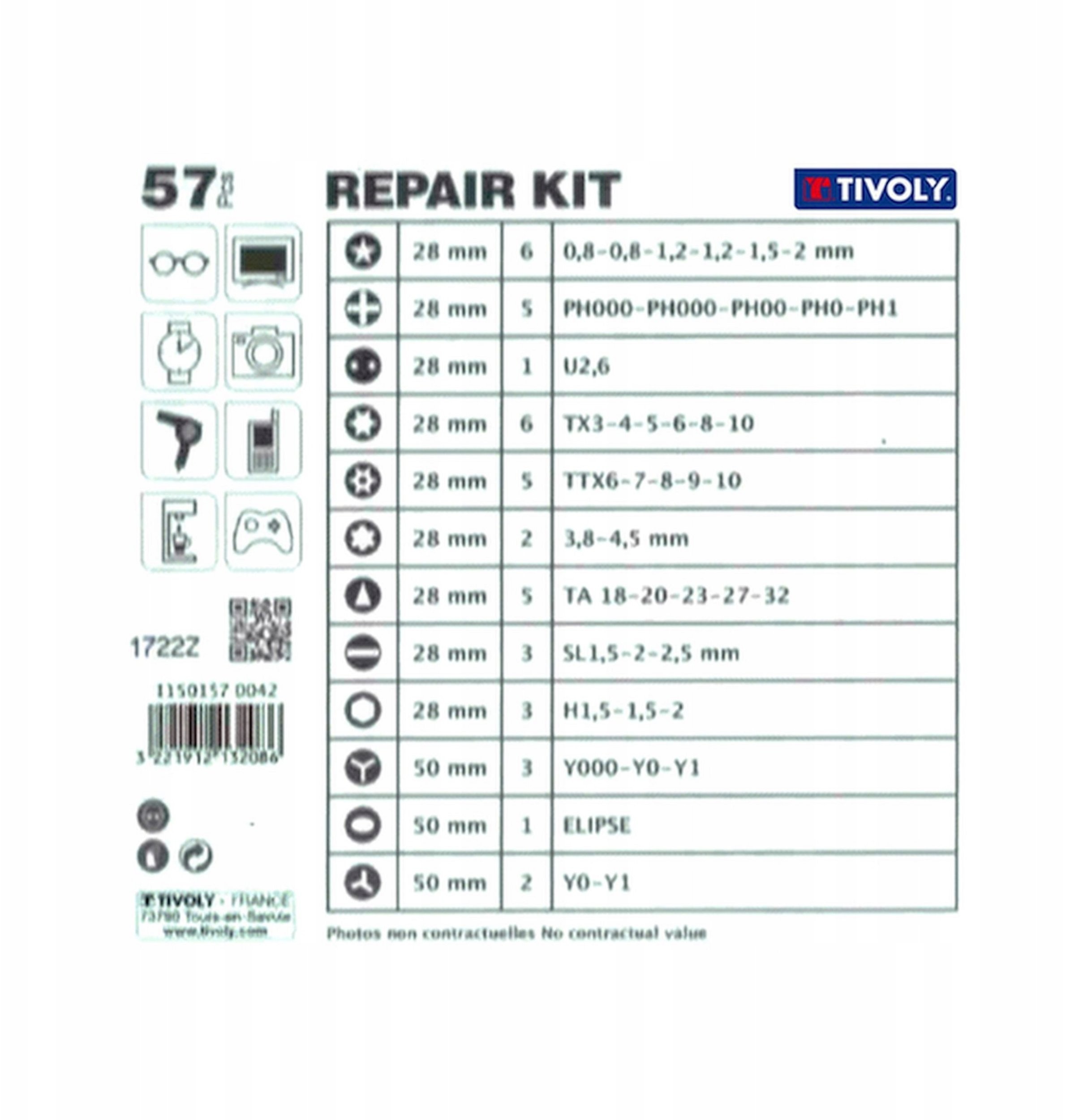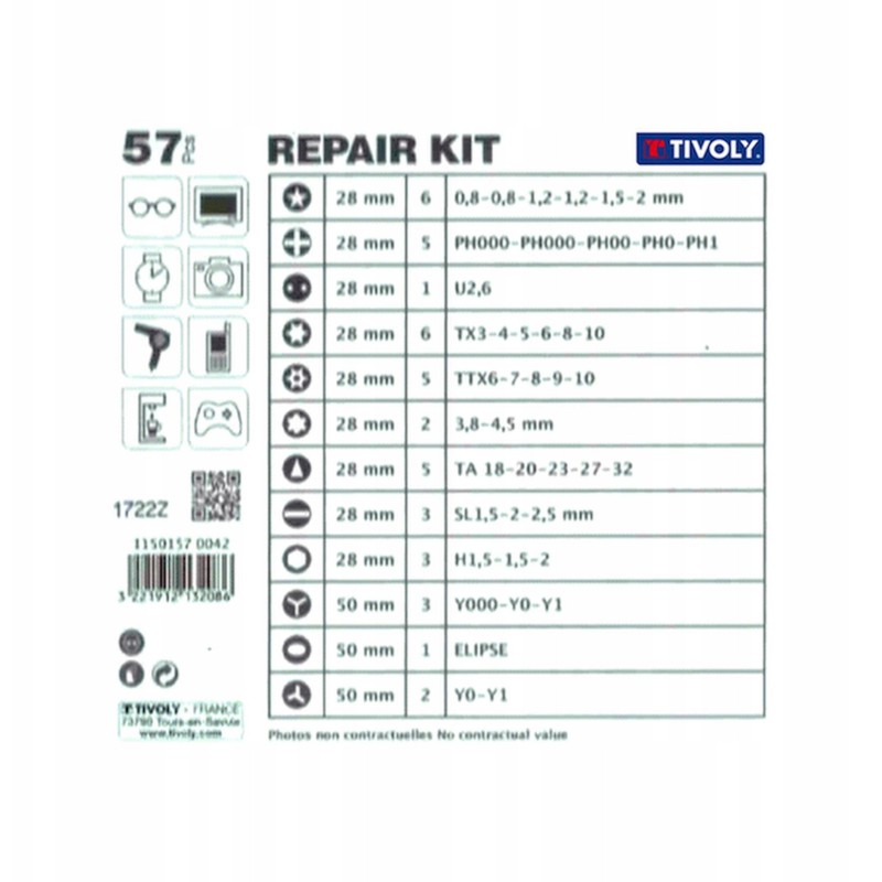 Reparaturwerkzeugsatz für Mobiltelefone, Tablets und Spielkonsolen, 57-teilig, TIVOLY, Frankreich