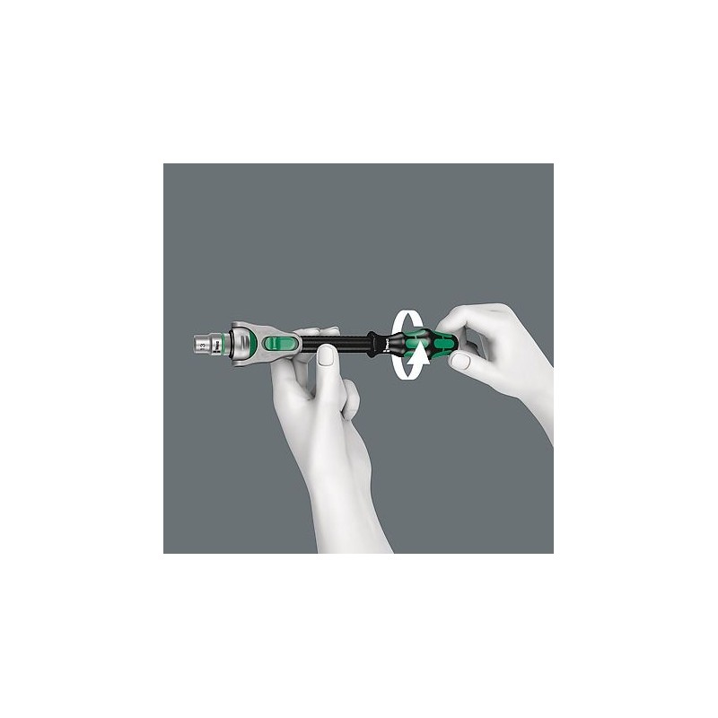- Der achsensymmetrische Kraftform-Griff ermöglicht zusammen mit der drehbaren Hülse schnelles Drehen.