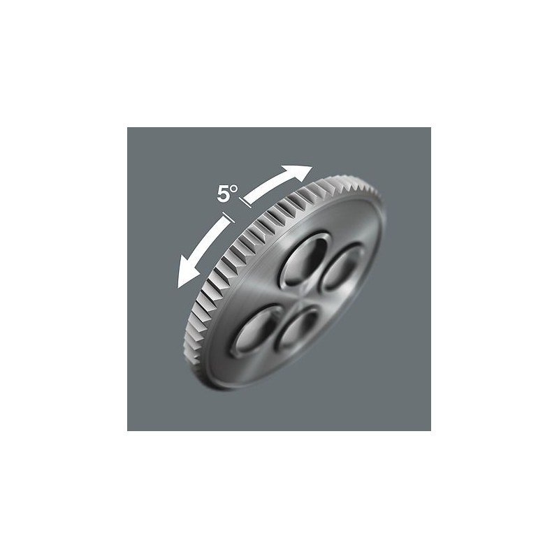 - Feine Verzahnung mit 72 Zähnen für einen geringen Arbeitswinkel von 5°.