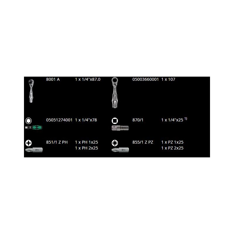 - Die Ratschen-Schraubenschlüssel Zyklop Mini 1 oder Zyklop Mini 2 können erfolgreich in engen Montagebereichen eingesetzt werden, wo nicht genügend Platz für andere Werkzeuge vorhanden ist. 1 Ratschen-Schraubenschlüssel für Steckschlüsseleinsätze und Schraubendreherbits Zyklop Mini 1 von Wera für 1/4"-Sechskant-Steckschlüsseleinsätze nach DIN ISO 1173-C 6,3 sowie E-Bits 6,3 und Steckschlüsseleinsätze und Bits der Serien Wera 1 und 4; die Verwendung des Adapters 870/1 ermöglicht den Einsatz von 1/4"-Steckschlüsseln; 1 Ratschenschlüssel Zyklop Mini 2 Wera zur direkten Aufnahme von speziellen Wera-Steckschlüsseln 8790 FA.