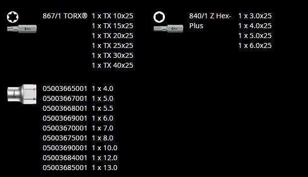 | Bits | Im Lieferumfang enthalten |
