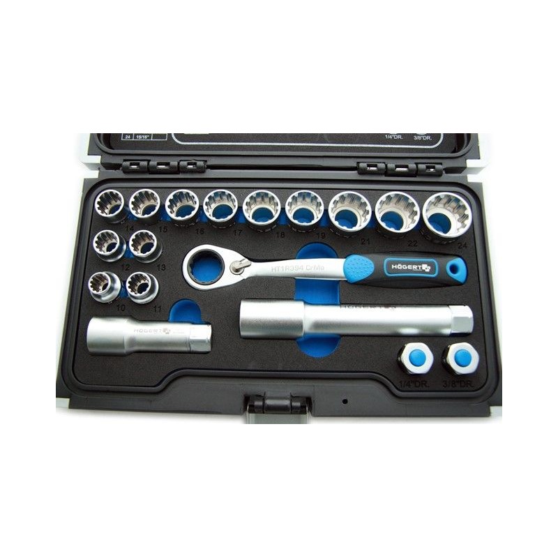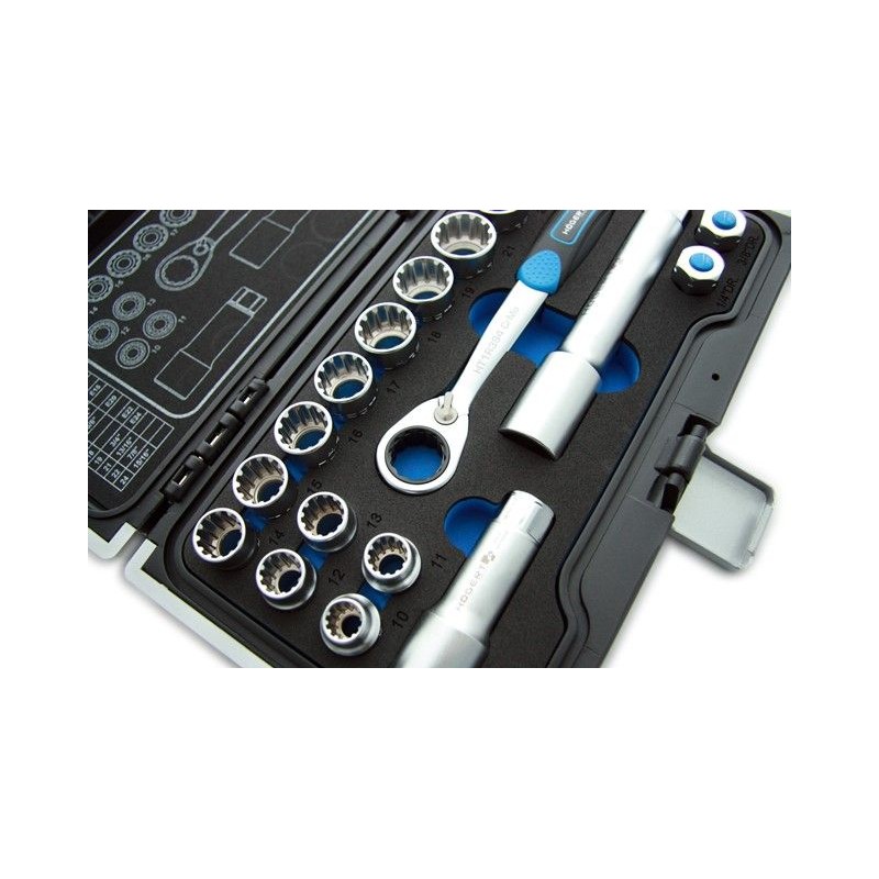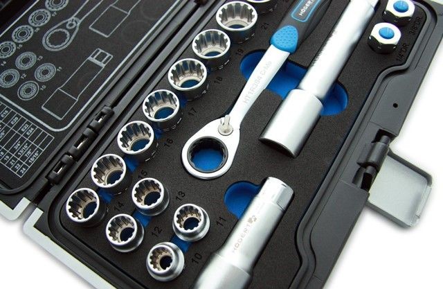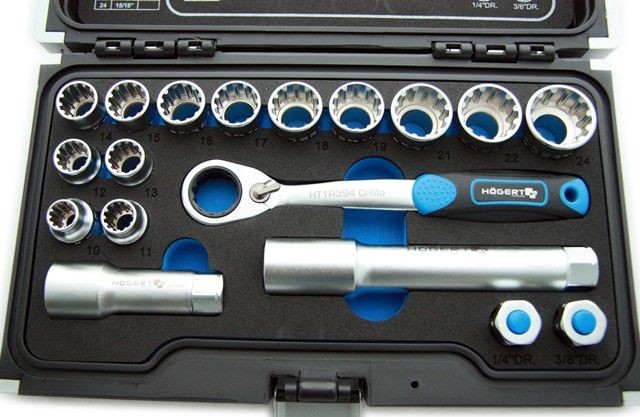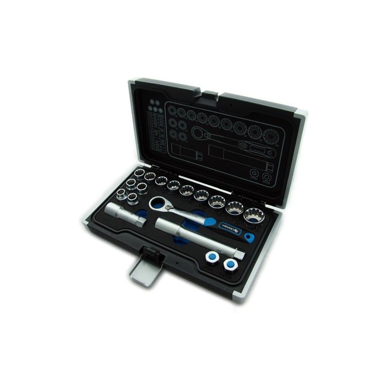 - Durchsteck-Steckschlüsseleinsätze: 10, 11, 12, 13, 14, 15, 16, 17, 18, 19, 21, 22, 24 mm
