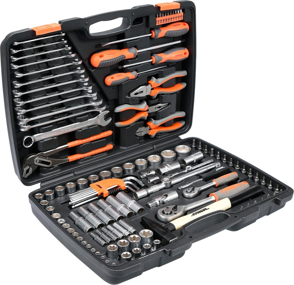 - Der STHOR-Werkzeugsatz besteht aus 122 Teilen, die in einem praktischen Kunststoffkoffer untergebracht sind.