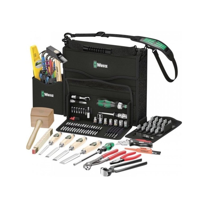 - Umfangreiches 134-teiliges Werkzeugset im kompakten Wera 2go-Werkzeugkoffer für den vielreisenden Tischler