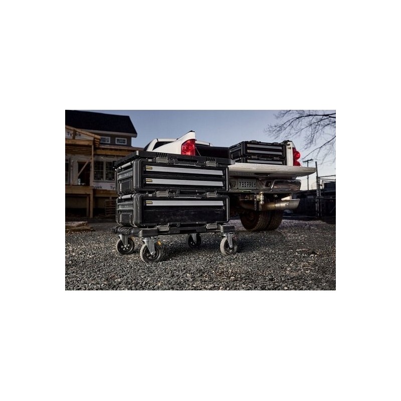 Die Transportplattform auf Rollen ist ein zentrales Element des Sets, das das einfache Manövrieren und den Transport mehrerer Werkzeugkoffer gleichzeitig ermöglicht. Dank der drehbaren Räder und der Bremsen können Sie sicher sein, dass Ihre Ausrüstung während des Transports sicher ist.