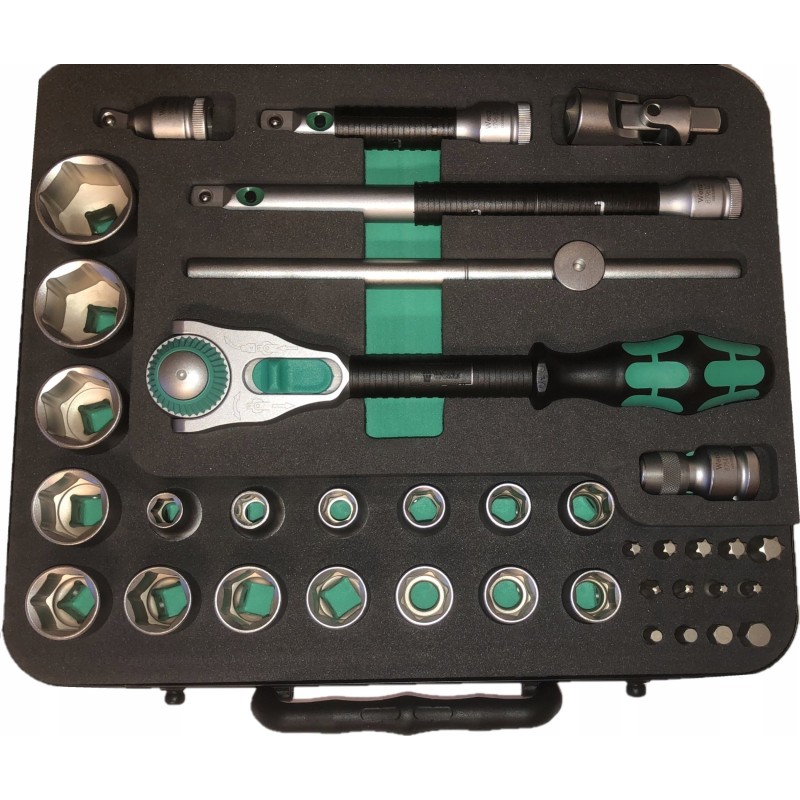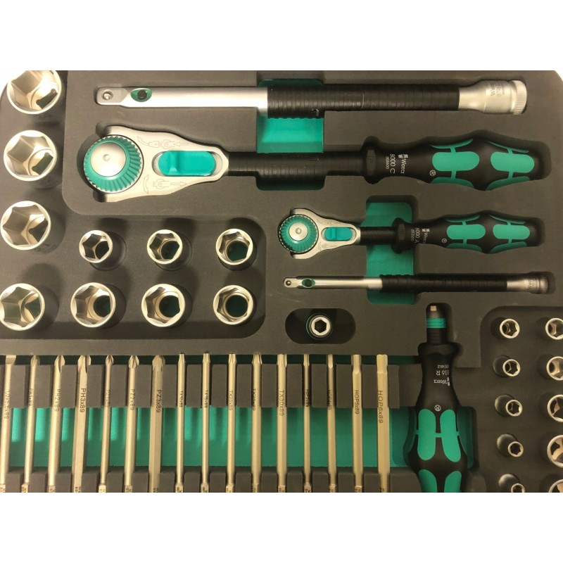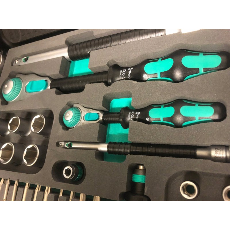 Die Zyklop Speed-Werkzeugsätze sind bis ins kleinste Detail sorgfältig verarbeitet: Ein zweifarbiger Schaumstoffeinsatz ermöglicht eine schnelle und sichere Anordnung der Werkzeuge im Koffer – so sieht man sofort, welche Werkzeuge fehlen. Außerdem kann der Schaumstoffeinsatz herausgenommen und in die Schublade eines Werkzeugwagens gelegt werden.