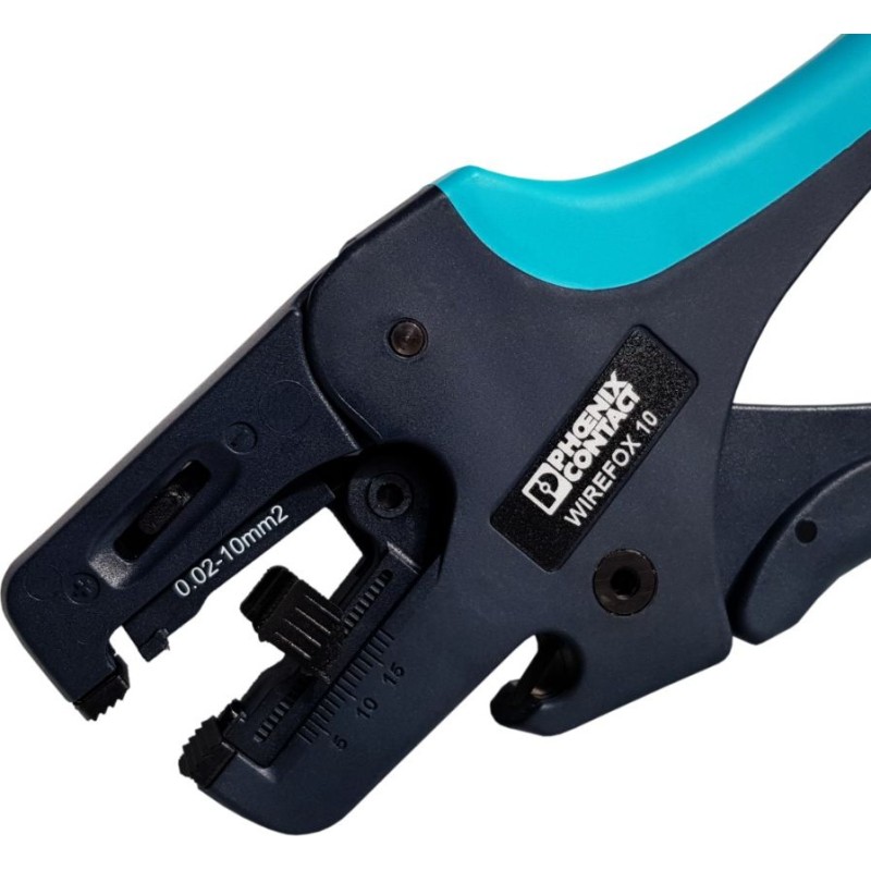 Zu den Vorteilen des Wirefox 10 gehören ein flexibel einstellbarer Begrenzer für die Abisolierlänge, ein praktischer integrierter Drahtschneider sowie die WIREFOX-Zange mit automatischem Einstellmechanismus für unterschiedlichste Isolierungen und Kabeldurchmesser.