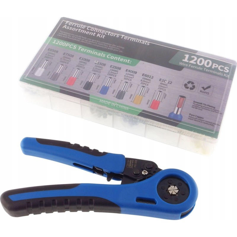 Set mit 1200 isolierten Kabelschuhen + Crimpzange, E6223