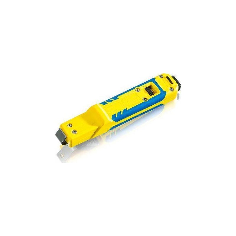 Professionelles Messer des deutschen Herstellers JOKARI zum Abisolieren aller auf dem Markt erhältlichen Rundkabel/-leitungen. Automatischer Rückzug der Hakenspitze nach Abschluss des Längsschnitts der Isolierung. Eine Entriegelung der Hakenspitze schützt vor ungewollten Schnittverletzungen.