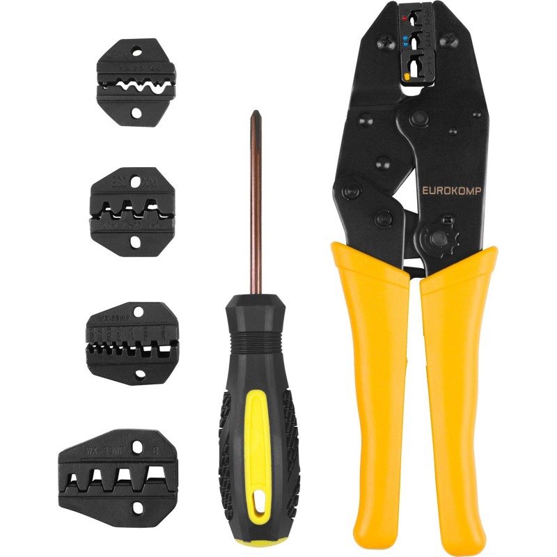 Crimpzangen-Set mit 5 Backen, Schraubendreher und stabiler Aufbewahrungstasche