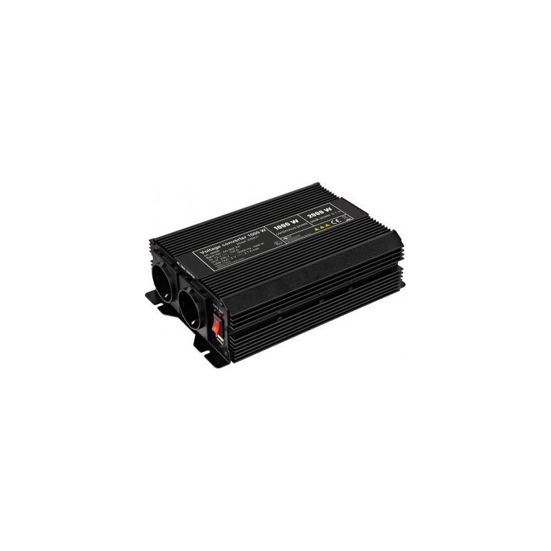 wandelt 12 V Gleichstrom in 230 V Wechselstrom um - geeignet für Geräte mit einer Nennleistung von bis zu 1000 W - mit 1 USB-Anschluss (2100 mA) und integriertem Lüfter - mit externer Sicherung - Eingang und Ausgang des Konverters sind elektrisch vom Gehäuse getrennt. Der Eingang ist elektrisch vom Ausgang getrennt