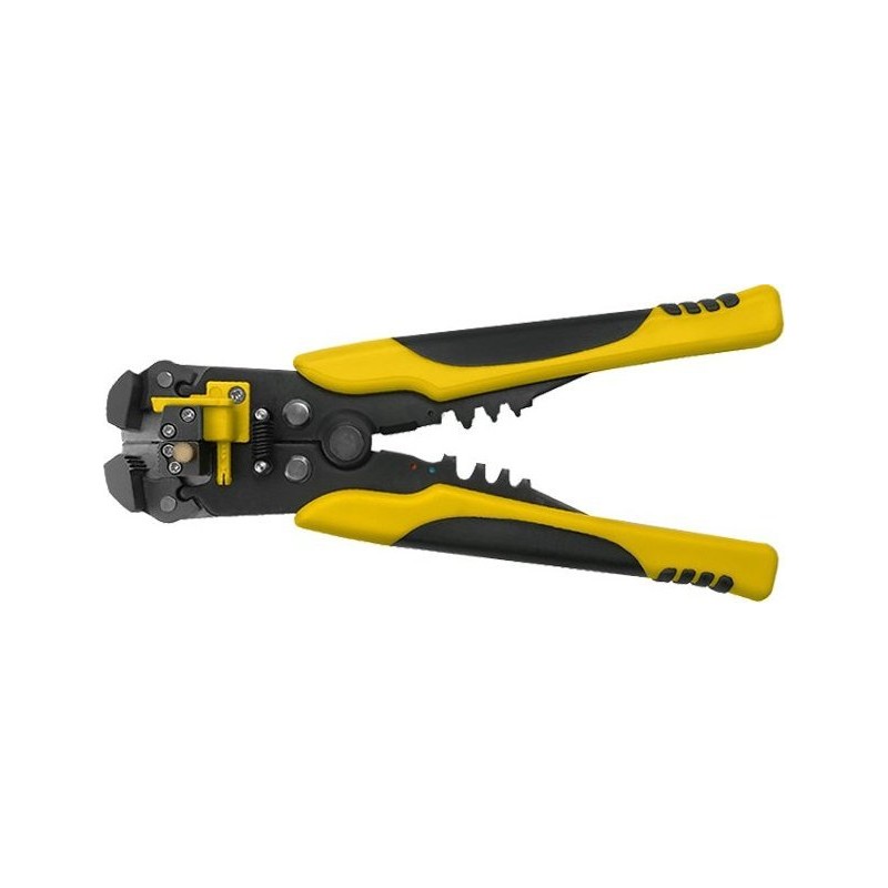 Der automatische Abisolierer ist ein sehr handliches Werkzeug zum Entfernen der Isolierung von einadrigen Leitungen mit einem Durchmesser von 0,5–6 mm² (24–10 AWG) oder von Adern in mehradrigen Leitungen; die Anpassung an den Kabelquerschnitt erfolgt automatisch. Er verfügt über eine Rückstellfeder, die die Hand erheblich entlastet und die Arbeit erleichtert. Die Hauptfunktionen dieses Werkzeugs sind das Abisolieren, das Crimpen von Kabelschuhen und präzises Schneiden.