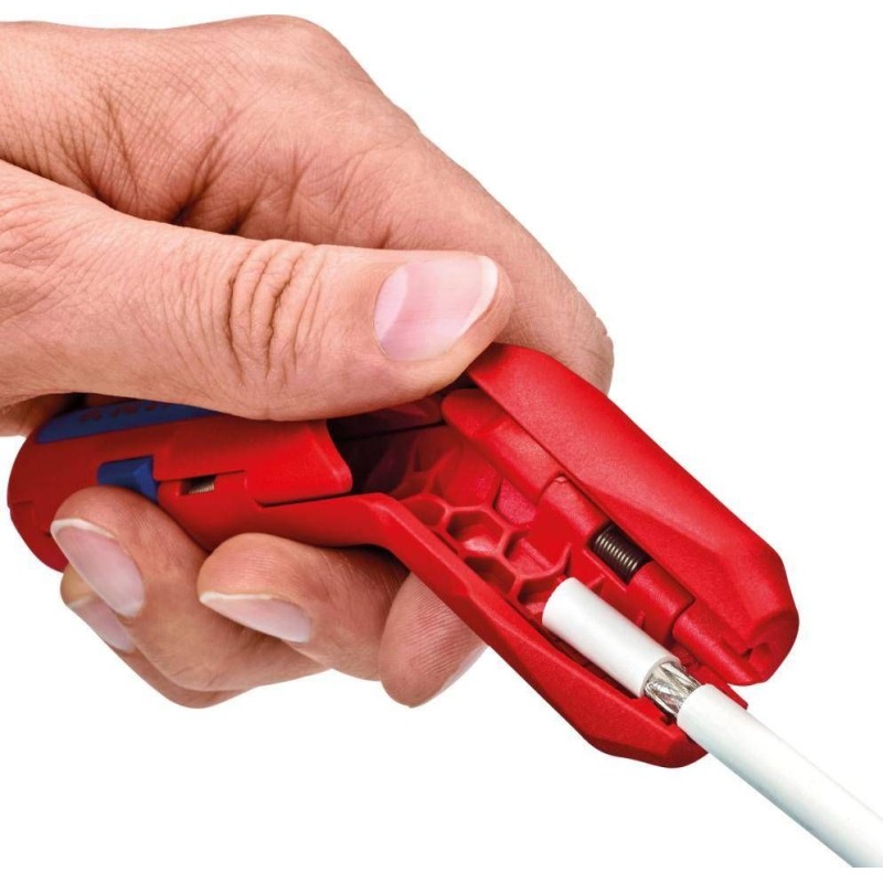 Anwendung: zum Entfernen der Isolierung und der Außenhülle von gängigen Rundkabeln und Kabeln in feuchten Räumen (z. B. NYM 3 x 1,5 mm² bis 5 x 2,5 mm²), Datenkabeln (CAT 5–7, Twisted Pair) und Koaxialkabeln.
