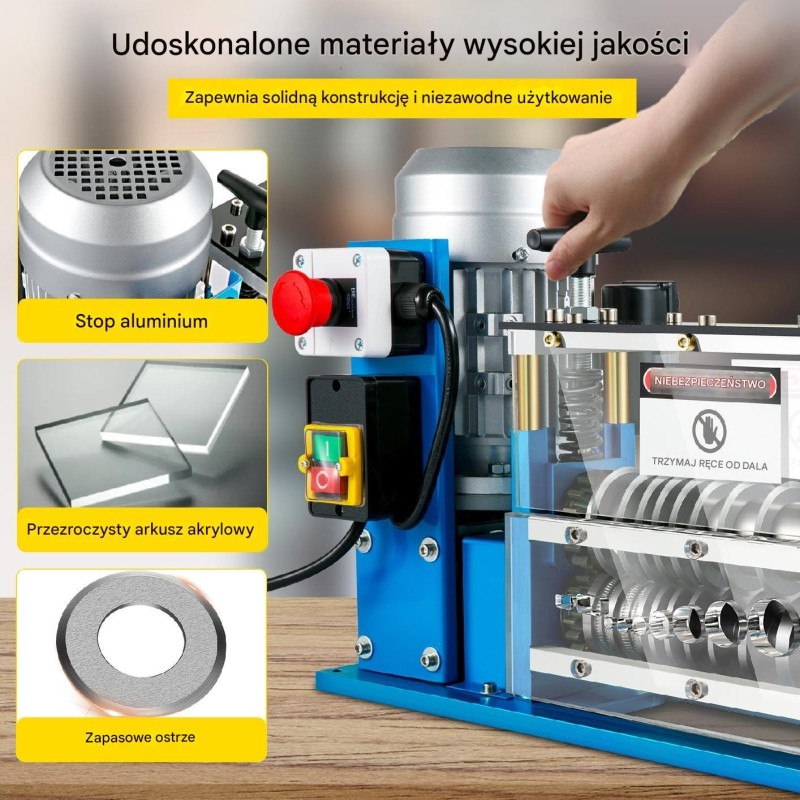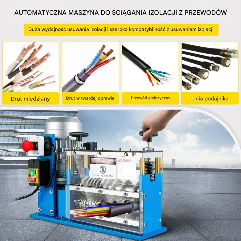 Die elektrische Abisoliermaschine mit 370 W ist eine moderne Lösung, die das Entfernen der Isolierung von Kabeln erheblich vereinfacht. Dank des automatischen Betriebs spart das Gerät Zeit und Mühe, was es zum idealen Werkzeug sowohl für Profis als auch für Hobby-Recycler macht.