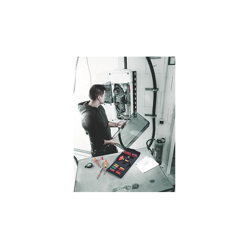 Das Wera Kraftform Kompakt VDE 24 Allrounder 1 besteht aus 25 Teilen, die einzeln gemäß der Norm IEC 60900 geprüft wurden. Diese Werkzeuge sind für Arbeiten unter Spannung bis 1000 V ausgelegt, was sie zur idealen Wahl für Elektriker und Spezialisten für Elektroinstallationen macht.