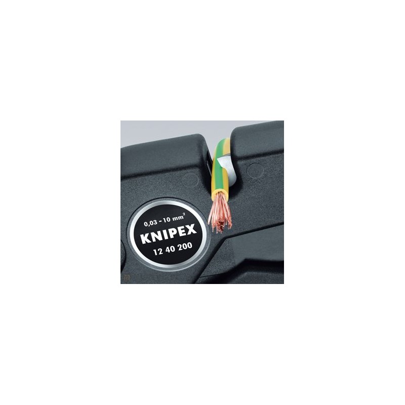 Professionelle automatische Abisolierzange von Knipex. Das patentierte Abisoliersystem macht die Arbeit mit diesem Werkzeug einfach und effektiv. Keine manuelle Einstellung erforderlich, keine Beschädigung der Kabel!