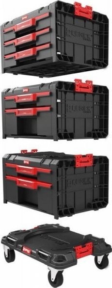 Das Qbrick System PRO Drawer 3 Toolbox Basic ist ein geräumiger, modularer Werkzeugkasten, der mit drei auf Metallschienen ausziehbaren Schubladen ausgestattet ist. Ein praktischer Druckknopf sorgt für einfachen Zugriff auf den Inhalt. Die Basic-Version der Schublade ist mit 9 verstellbaren Trennwänden ausgestattet, die eine übersichtliche Organisation von Werkzeugen und Werkstattzubehör ermöglichen. Seitliche Polyamid-Verbindungsstücke ermöglichen eine einfache Verbindung mit anderen Modulen der PRO- und ONE-Serien (mit Vario-Deckeln und Multi-Adapter). Ein praktischer Griff sorgt für komfortables Tragen der Werkzeuge. Die Identifizierung des Inhalts wird durch ein mit einer Polycarbonat-Abdeckung geschütztes Etikettenfeld gewährleistet. Ein automatisches System, das das Herausziehen der Schubladen verhindert, garantiert hohen Bedienkomfort der Kiste.