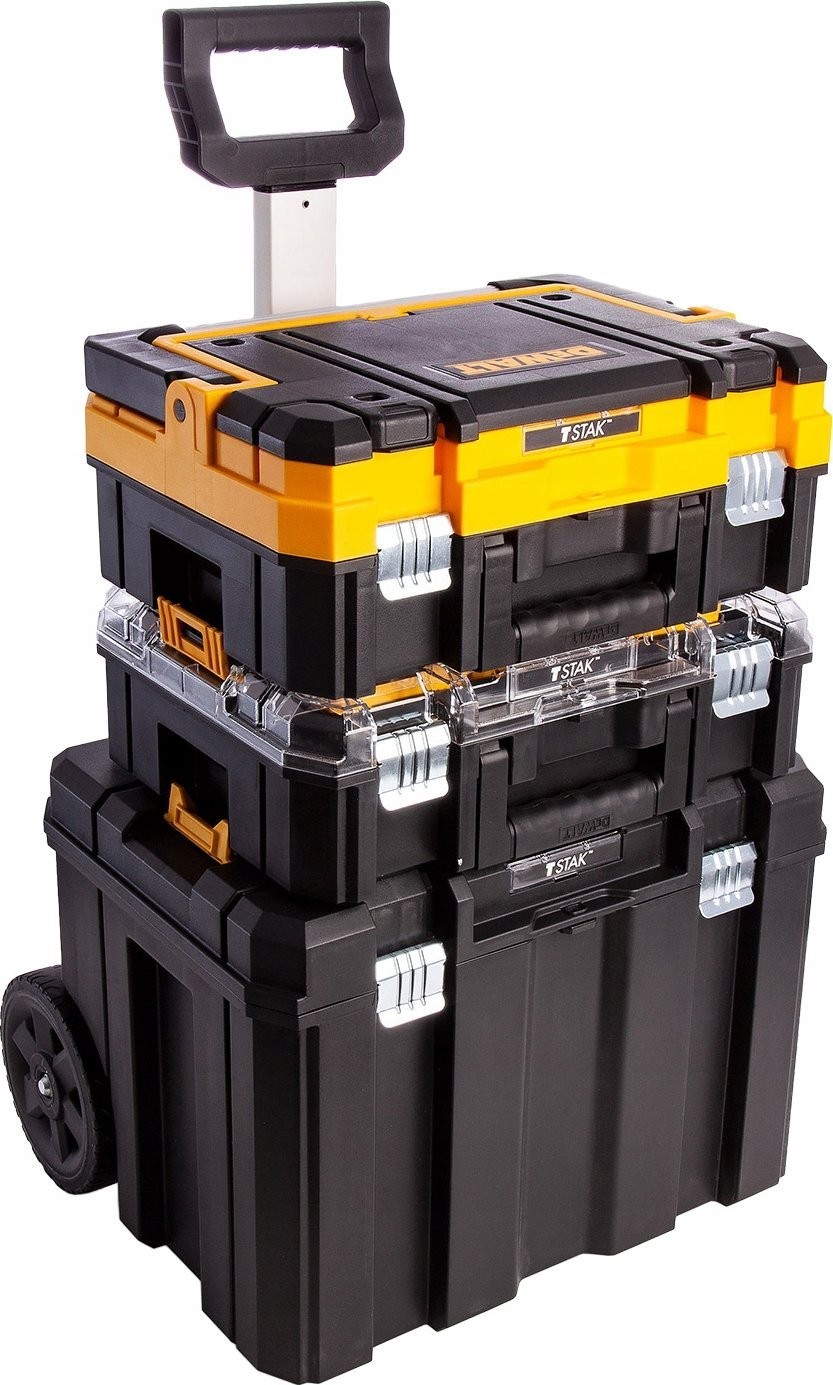 Das mobile Kofferset „Tower on Wheels“ von DeWALT (DWST1-81049) besteht aus 3 Koffern des TSTAK SYSTEM 2.0:
