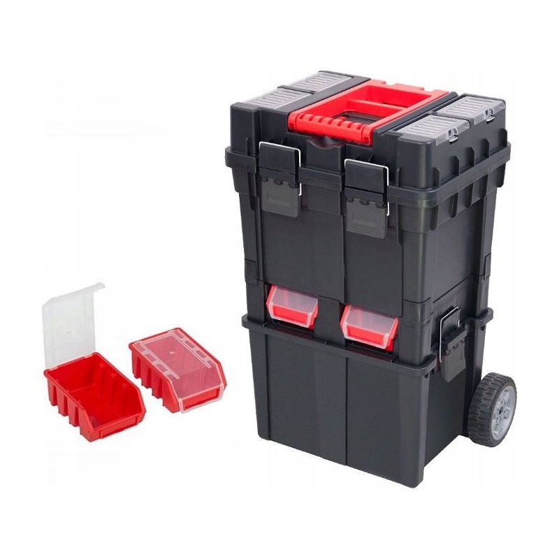- Die geräumige und mobile Werkzeugwerkstatt ist aus strapazierfähigem Kunststoff gefertigt