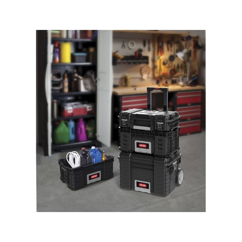 - Die praktische Gear-Kiste ist die ideale Lösung für jeden Heimwerker. Dank ihrer universellen Konstruktion kann die Kiste sowohl in der Werkstatt als auch zu Hause verwendet werden – sie eignet sich zur Aufbewahrung von Werkzeugen oder Zubehör, aber auch von Haushaltsgeräten.