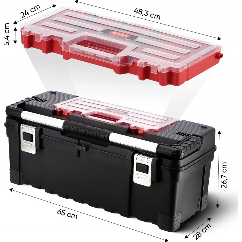 So können Sie sich über eine gute Wahl freuen und sicher sein, dass Sie nicht ständig neue Werkzeugkisten kaufen müssen. Dank der robusten Kiste können Sie sie problemlos im Transporter oder Auto transportieren – ohne Angst vor Beulen oder Kratzern.