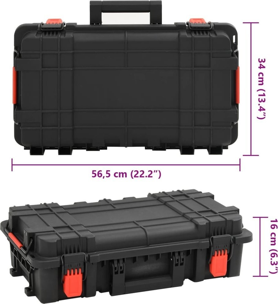 vidaXL vidaXL Werkzeugkoffer im Flugkoffer-Design, schwarz, 56,5 x 34 x 16 cm, PP