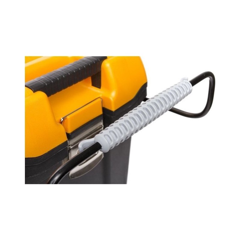 Technische DatenForte Tools TK-28 ist ein mobiler, großer Werkzeugkasten mit den Maßen 59,5 cm x 38 cm x 42 cm, gefertigt aus strapazierfähigem Metall und Kunststoff. Er verfügt über ein praktisches Ordnungssystem, das eine einfache Aufbewahrung von Werkzeugen und kleineren Materialien wie Schrauben oder Dübeln ermöglicht. Dank der Rollen und des Griffs lässt sich die Kiste bequem transportieren, und ein zusätzliches Schloss sorgt für die Sicherheit der aufbewahrten Gegenstände.
