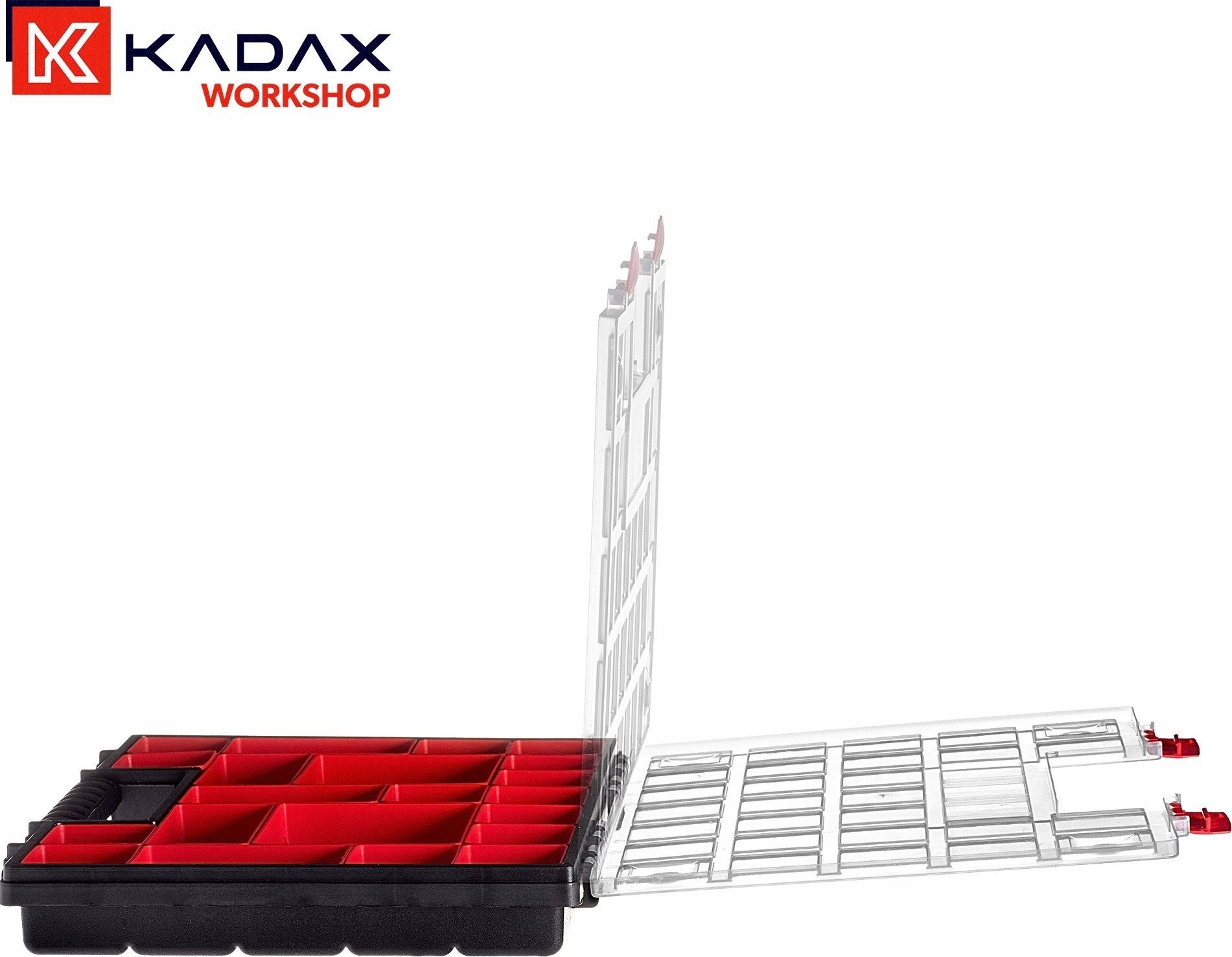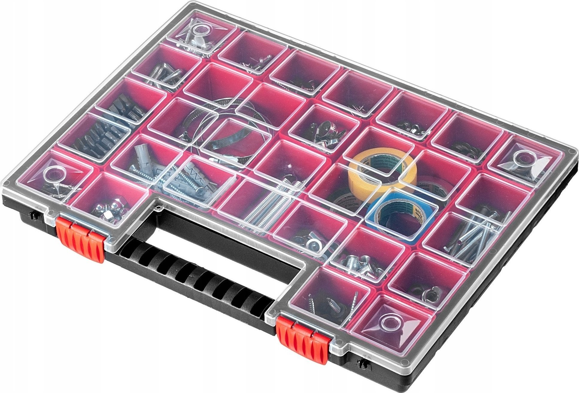 FUNKTIONAL – Die Werkzeugkiste verfügt über herausnehmbare Behälter mit universeller Form. Dank ihnen können Sie die Innenaufteilung an die Anzahl und Größe der Teile anpassen. Der Organizer eignet sich hervorragend zur Aufbewahrung von u. a. Schraubendrehern, Hämmern und Nägeln.