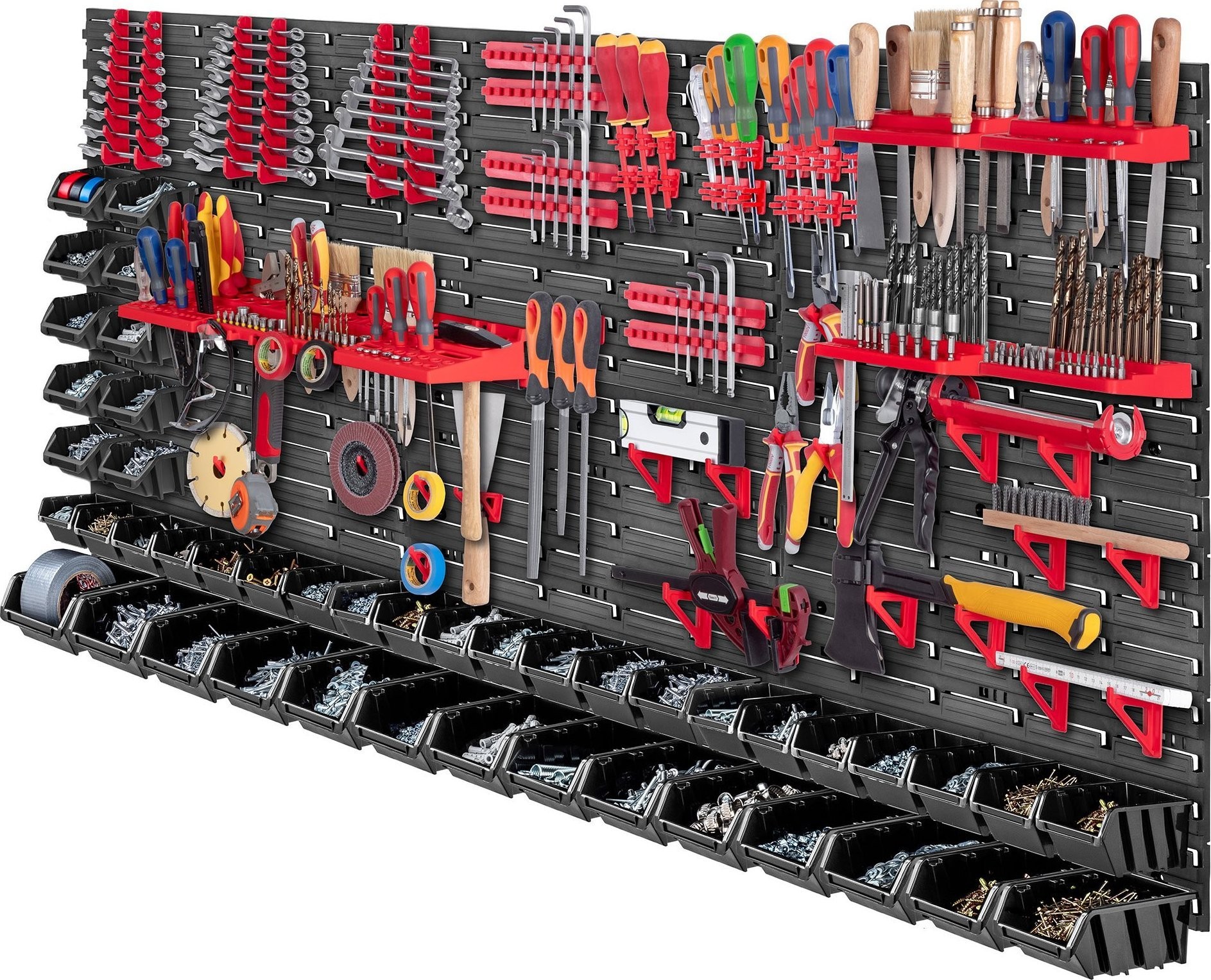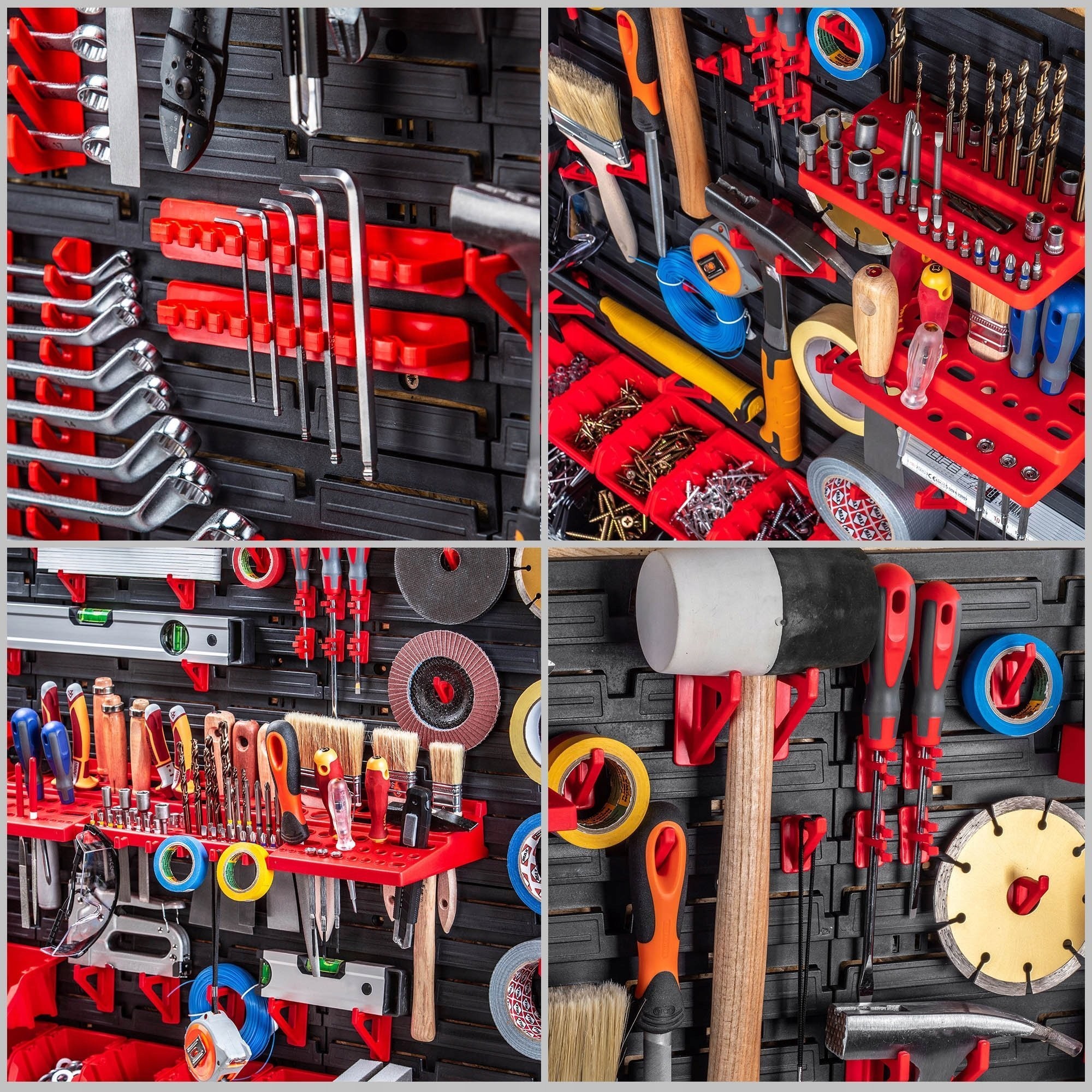PERFEKTE ORGANISATION – Die große Werkstattwand ermöglicht Ihnen eine praktische und bequeme Anordnung aller Werkzeuge. Das im Set enthaltene nützliche Zubehör sorgt für die Sicherheit der aufbewahrten Gegenstände.