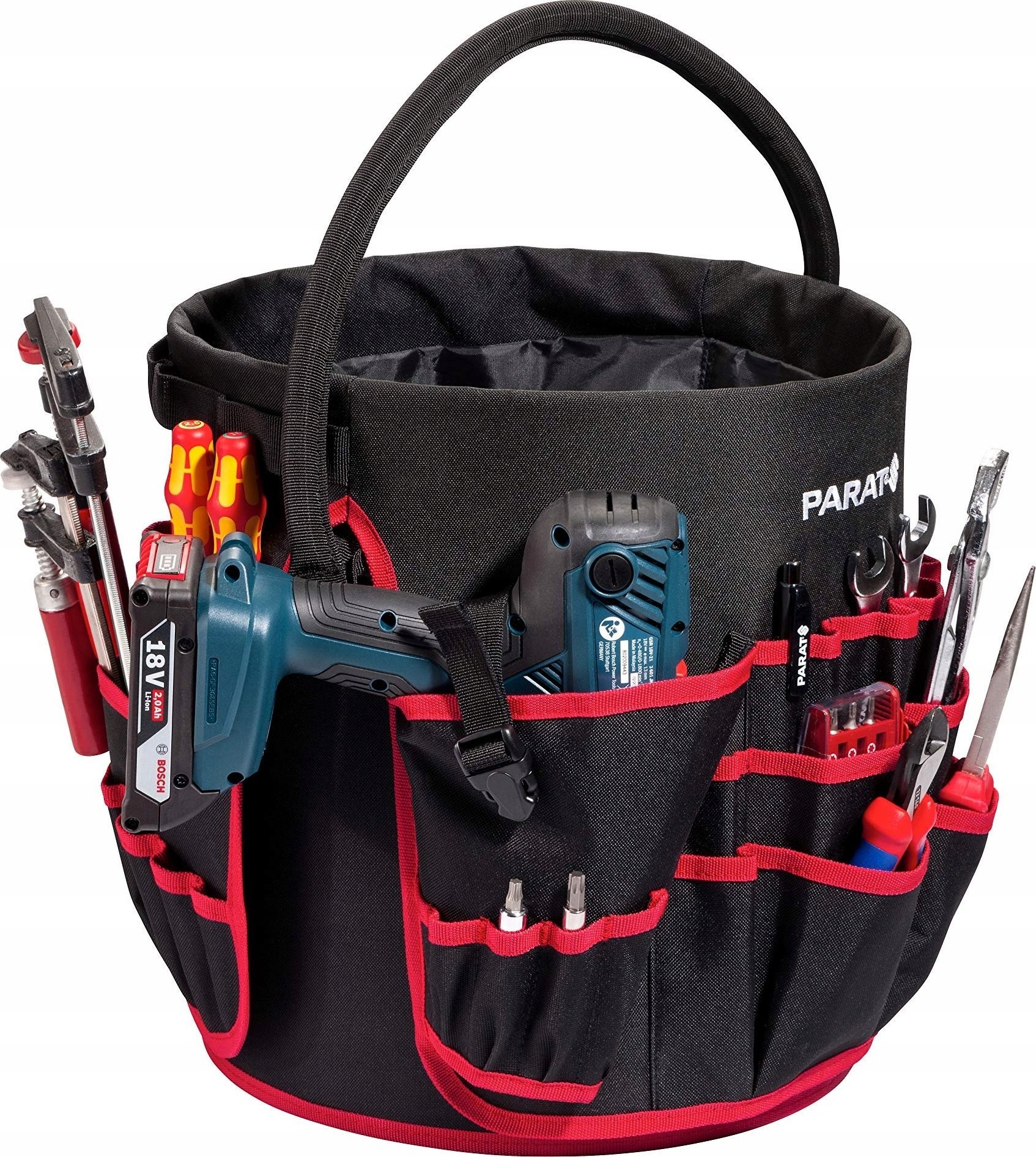 - Artikelname: PARAT Basic Tool Bucket Werkzeugtasche (ca. 50 Werkzeuge, Innen- und Außentaschen, Schultergurt) 5990831991, schwarz