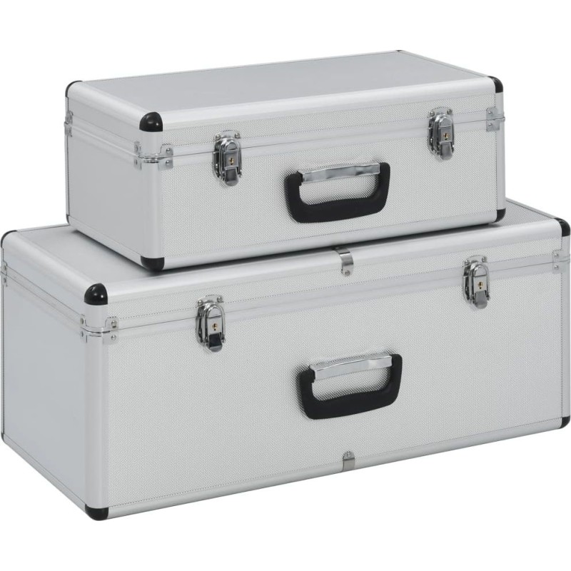 Das aus Holz, ABS-Platten und Aluminium gefertigte Kofferset zeichnet sich durch eine leichte, aber robuste Konstruktion sowie ein elegantes Design aus. Die Polsterung aus weichem Material verhindert Kratzer und sorgt dafür, dass die aufbewahrten Gegenstände in einwandfreiem Zustand bleiben. Zusätzlich sind die Kisten mit 2 Schlössern (2 Schlüssel sind im Lieferumfang enthalten) ausgestattet, um sie vor unbefugtem Zugriff zu schützen, sowie mit einem Tragegriff, mit dem Sie sie überallhin mitnehmen können.