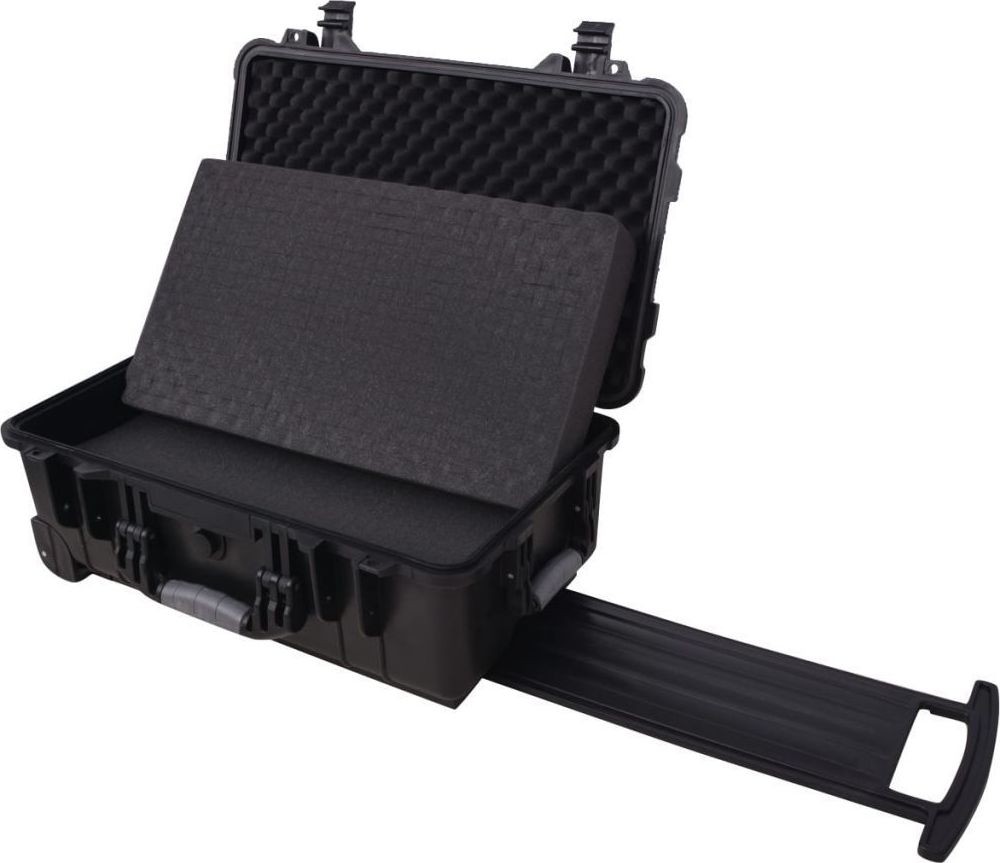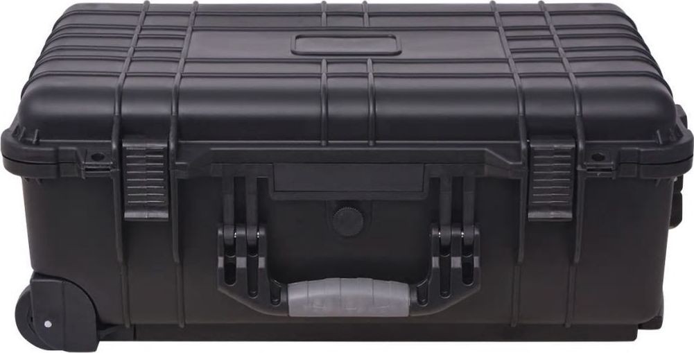 Der Werkzeugkoffer ist mit zwei Rollen und einem verstellbaren Teleskopgriff ausgestattet, der den Transport des Koffers auf Reisen erleichtert. Sein attraktives Design und die schwarze Oberfläche garantieren eine lange Lebensdauer. Er wird mit zwei Vorhängeschlössern verschlossen, um maximale Sicherheit zu gewährleisten (die Vorhängeschlösser sind nicht im Lieferumfang enthalten).