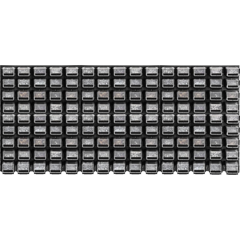MODULARER AUFBAU – Die große Werkzeugtafel ist modular aufgebaut. Sie besteht aus vielen Elementen, die du frei konfigurieren und um weitere Module erweitern kannst. Die universelle Leiste ermöglicht das Aufhängen von Werkstattbehältern, Regalen sowie Werkzeughaltern.