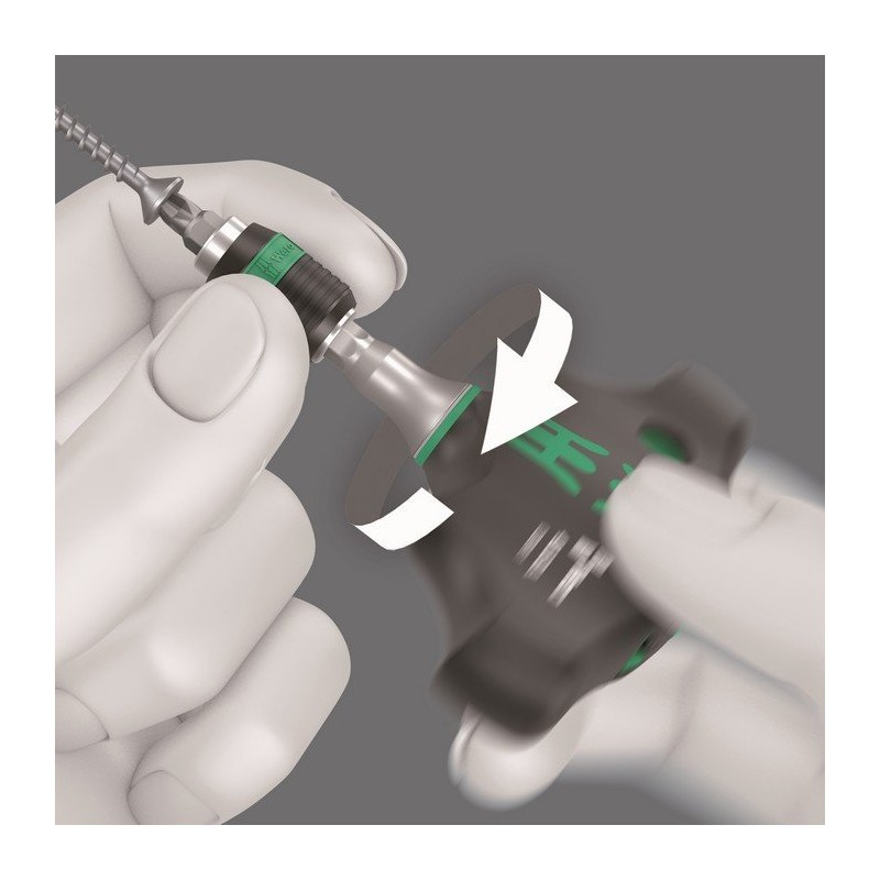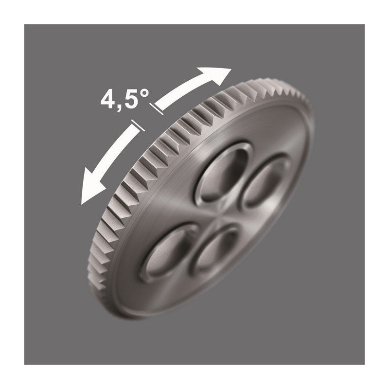 Ein feinverzahnter Ratschenmechanismus im Griff (80 Zähne/Rückschlagwinkel 4,5°) ermöglicht ein leichteres und schnelleres Eindrehen, ohne das Werkzeug neu ansetzen zu müssen.