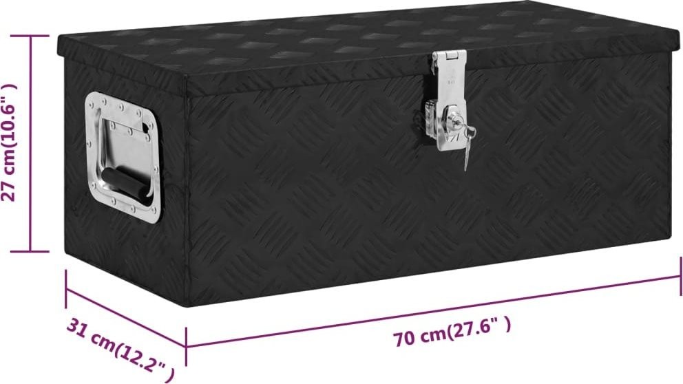 vidaXL Aufbewahrungskiste, schwarz, 70 x 31 x 27 cm, Aluminium