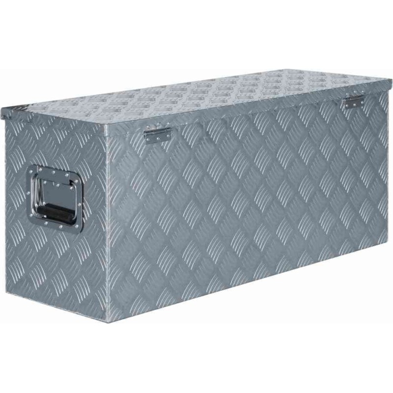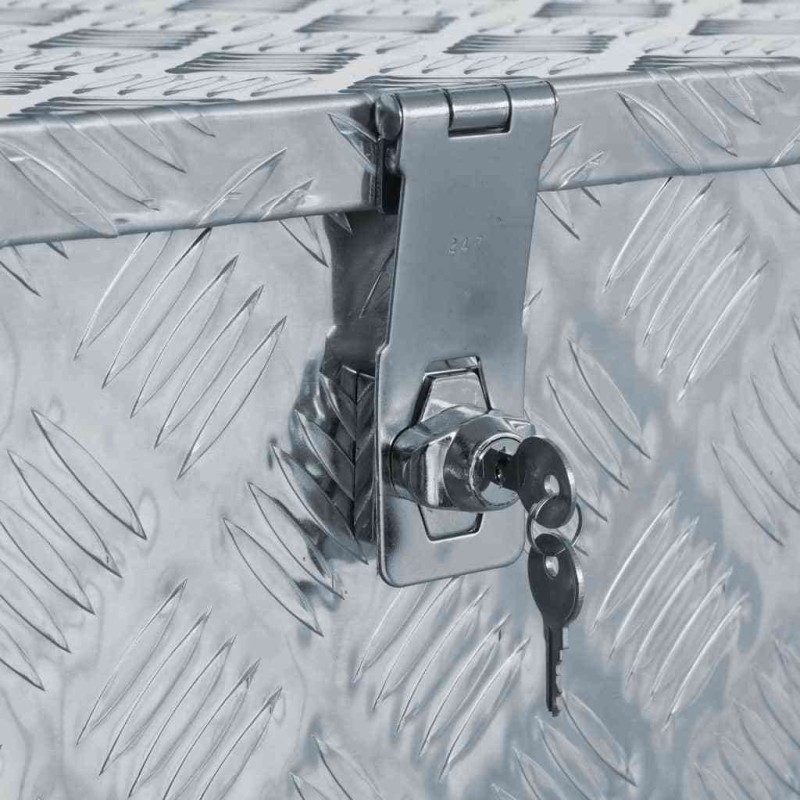 Die Ausführung aus hochwertigem, geriffeltem Aluminiumblech garantiert, dass die Kiste für die Anhängerdeichsel langlebig und rostbeständig ist. Der großzügige Stauraum eignet sich zur Aufbewahrung von Werkzeugen, Zubehör und Ausrüstung. Für zusätzliche Sicherheit ist sie zudem mit einem Schloss ausgestattet (2 Schlüssel sind im Lieferumfang enthalten).