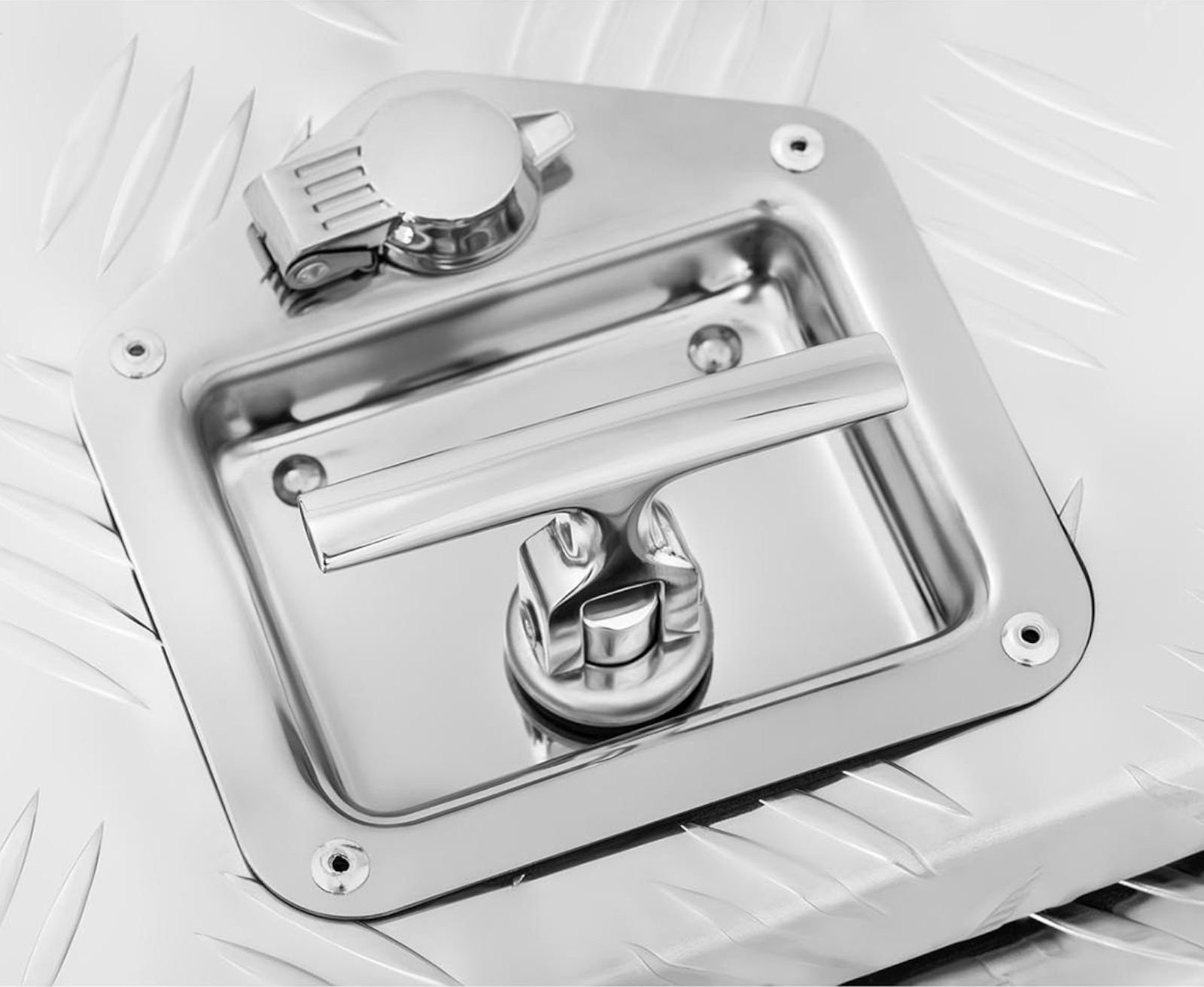 der Marke MSW mit den Maßen und einem Fassungsvermögen von 120 l sorgen Sie für Ordnung in Ihrer Werkstatt. Die robuste Konstruktion der Werkstattkiste besteht aus sehr widerstandsfähigem Aluminium. Das Material korrodiert nicht und ist beständig gegen die meisten Chemikalien. Die 1,8 mm starken Wände ermöglichen die sichere Aufbewahrung und den Transport selbst schwerer Werkzeuge. Das bequeme Öffnen des Deckels wird durch spezielle Ketten ermöglicht. Für die Sicherheit der Werkzeuge sorgt ein eingebautes Schloss. Es schützt die Ausrüstung vor unbefugtem Zugriff. Zum Öffnen und Schließen dienen die mitgelieferten Schlüssel.