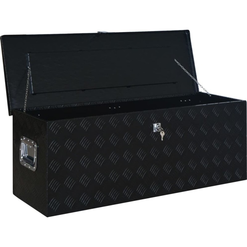 Die Ausführung aus hochwertigem, geriffeltem Aluminiumblech garantiert, dass die Kiste für die Anhängerdeichsel rostfrei und langlebig ist. Der großzügige Stauraum eignet sich zur Aufbewahrung von Werkzeugen, Zubehör und Ausrüstung. Für zusätzliche Sicherheit ist sie zudem mit einem Schloss ausgestattet (2 Schlüssel sind im Lieferumfang enthalten).