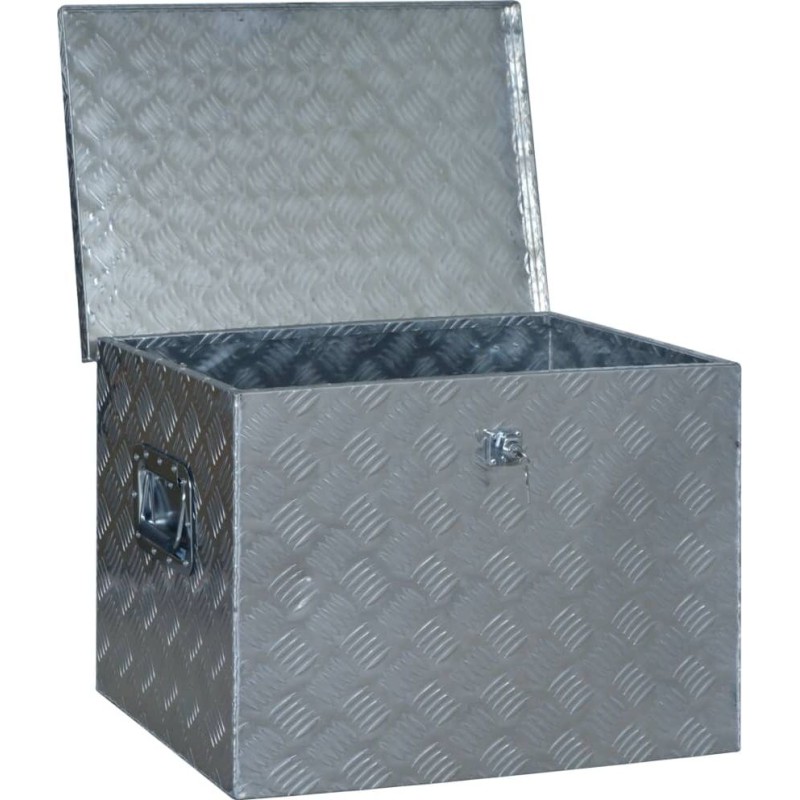 Die Ausführung aus hochwertigem, geriffeltem Aluminiumblech garantiert, dass die Kiste für die Anhängerdeichsel rostfrei und langlebig ist. Der großzügige Stauraum eignet sich zur Aufbewahrung von Werkzeugen, Zubehör und Ausrüstung. Für zusätzliche Sicherheit ist sie zudem mit einem Schloss ausgestattet (2 Schlüssel sind im Lieferumfang enthalten).