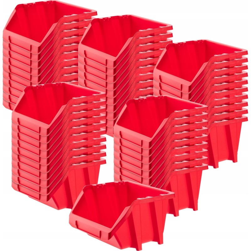 VERSCHIEDENE TYPEN – Die Lagerbehälter sind in zwei universellen Farben erhältlich: rot und schwarz. Sie sind in den Größen 118 x 98 mm, 144 x 118 mm, 187 x 158 mm, 272 x 198 mm und 272 x 238 mm erhältlich. Erhältlich sind sie in Packungen zu 1, 10, 20 und 50 Stück.