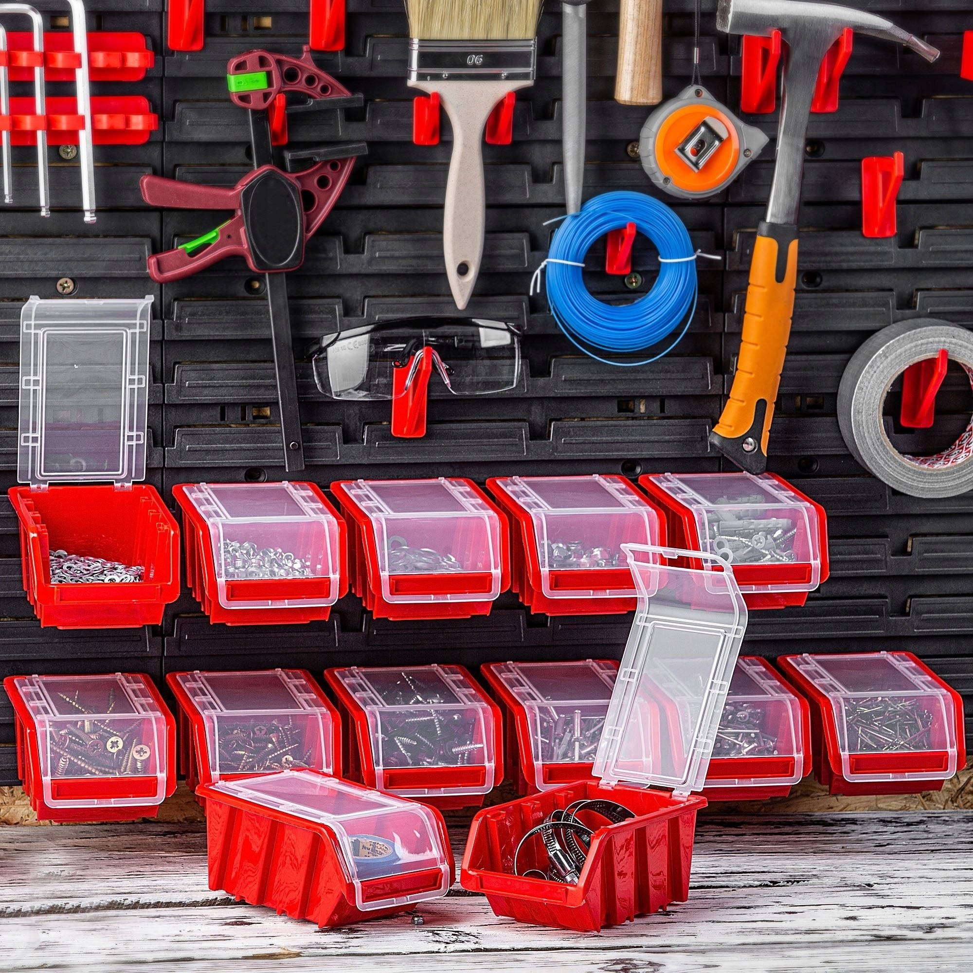 GERÄUMIG – Dank ihrer relativ hohen Ränder bieten die Werkstattbehälter Platz für eine Vielzahl von Kleinteilen und kleinen Werkzeugen. Einige davon sind mit stabilen, transparenten Deckeln ausgestattet, die den Inhalt vor Staub, Verschmutzungen und dem Verschütten während des Transports schützen.