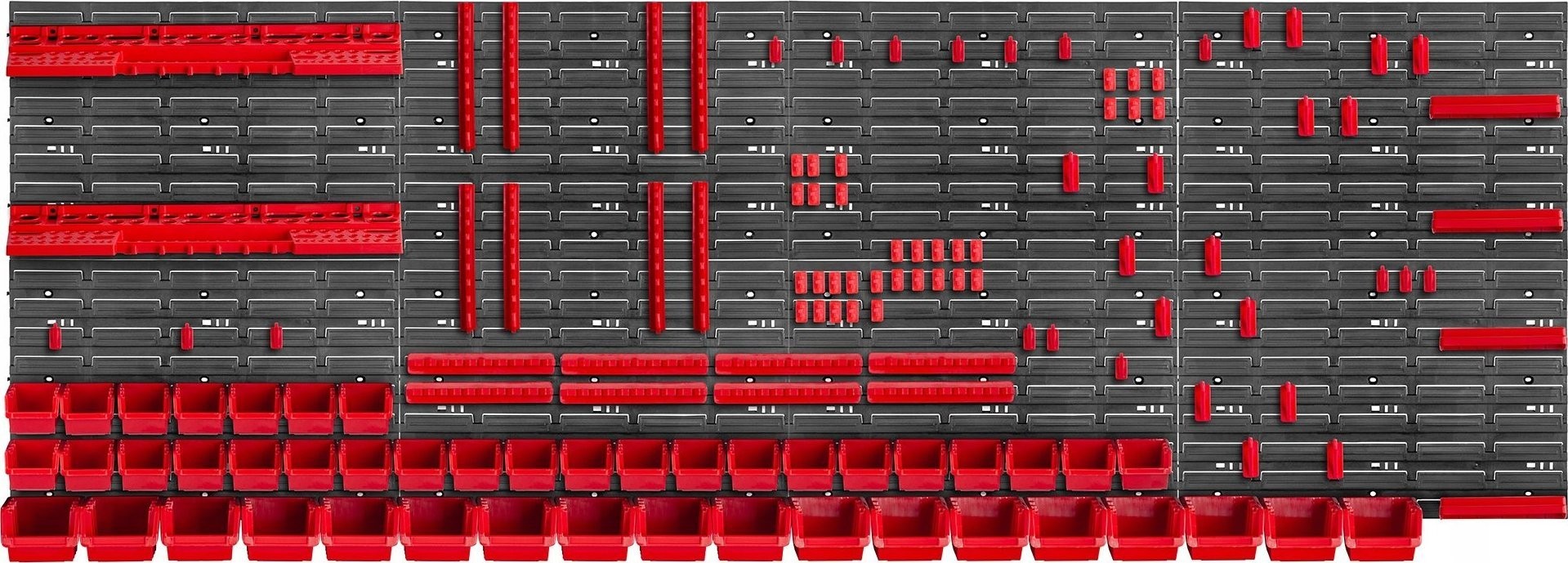 MODULARER AUFBAU – Die große Werkzeugtafel ist modular aufgebaut. Sie besteht aus vielen Elementen, die du frei konfigurieren und um weitere Module erweitern kannst. Die universelle Leiste ermöglicht das Aufhängen von Werkstattbehältern, Regalen sowie Werkzeughaltern.