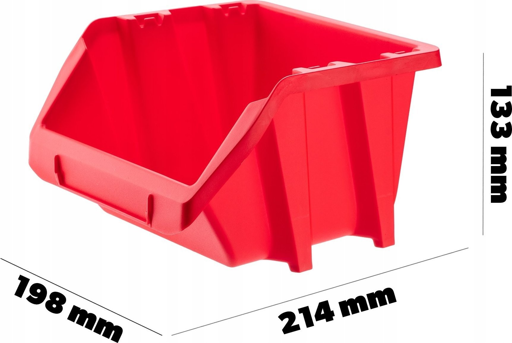 VERSCHIEDENE TYPEN – Die Lagerbehälter sind in zwei universellen Farben erhältlich: rot und schwarz. Sie sind in den Größen 118 x 98 mm, 144 x 118 mm, 187 x 158 mm, 272 x 198 mm und 272 x 238 mm erhältlich. Erhältlich sind sie in Packungen zu 1, 10, 20 und 50 Stück.