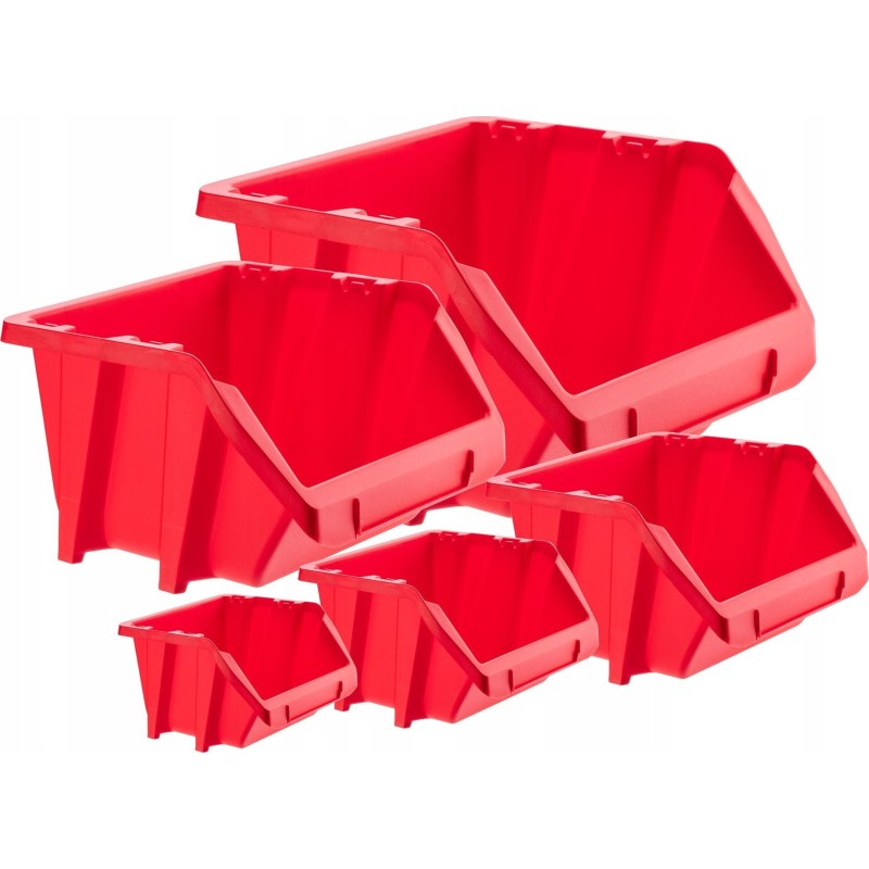 VERSCHIEDENE TYPEN – Die Aufbewahrungsbehälter sind in zwei universellen Farben erhältlich: rot und schwarz. Sie sind in den Größen 118 x 98 mm, 144 x 118 mm, 187 x 158 mm, 272 x 198 mm und 272 x 238 mm erhältlich. Erhältlich sind sie in Packungen zu 1, 10, 20 und 50 Stück.