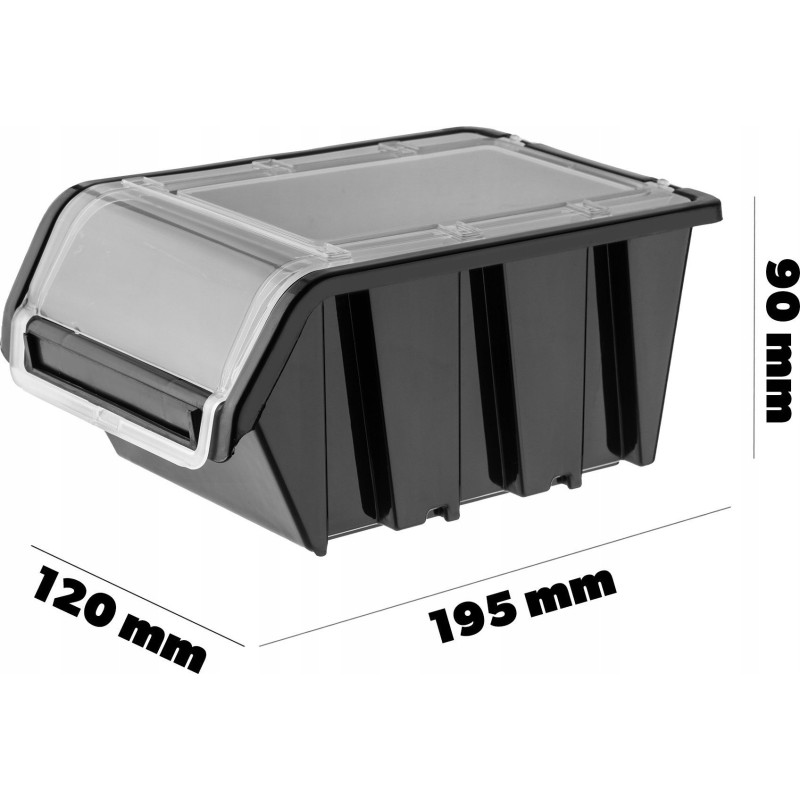 STABIL – Die Werkstattbehälter mit Deckel verfügen über spezielle Noppen. Diese ermöglichen die modulare Verbindung der Organizer zu einer stabilen und sicheren Konstruktion. Die Behälter können auch an einer Leiste oder einer speziellen Werkstatttafel aufgehängt werden.