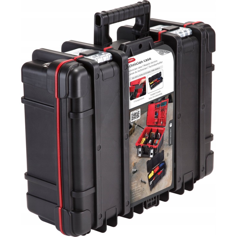 Unser Werkzeugkoffer ist strapazierfähig, da er aus hochwertigem Kunststoff gefertigt wurde. Das Material ist widerstandsfähig gegen mechanische Stöße und Verformungen, wodurch der Koffer seine Eigenschaften länger beibehält. Die Verschlüsse sind aus Metall gefertigt.