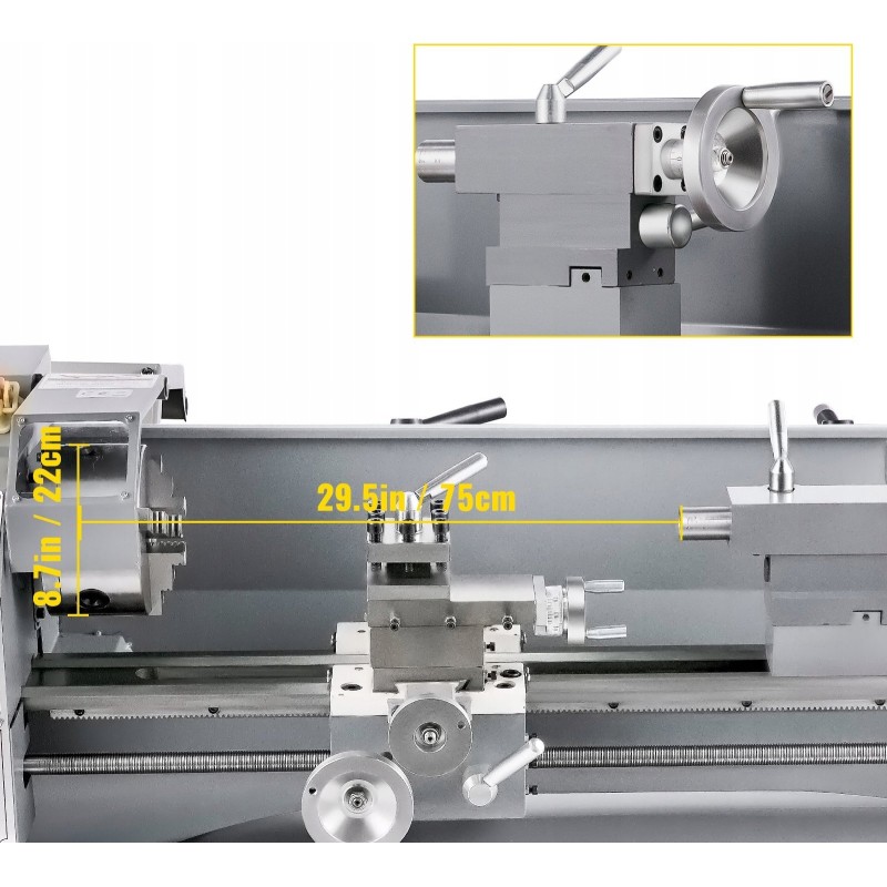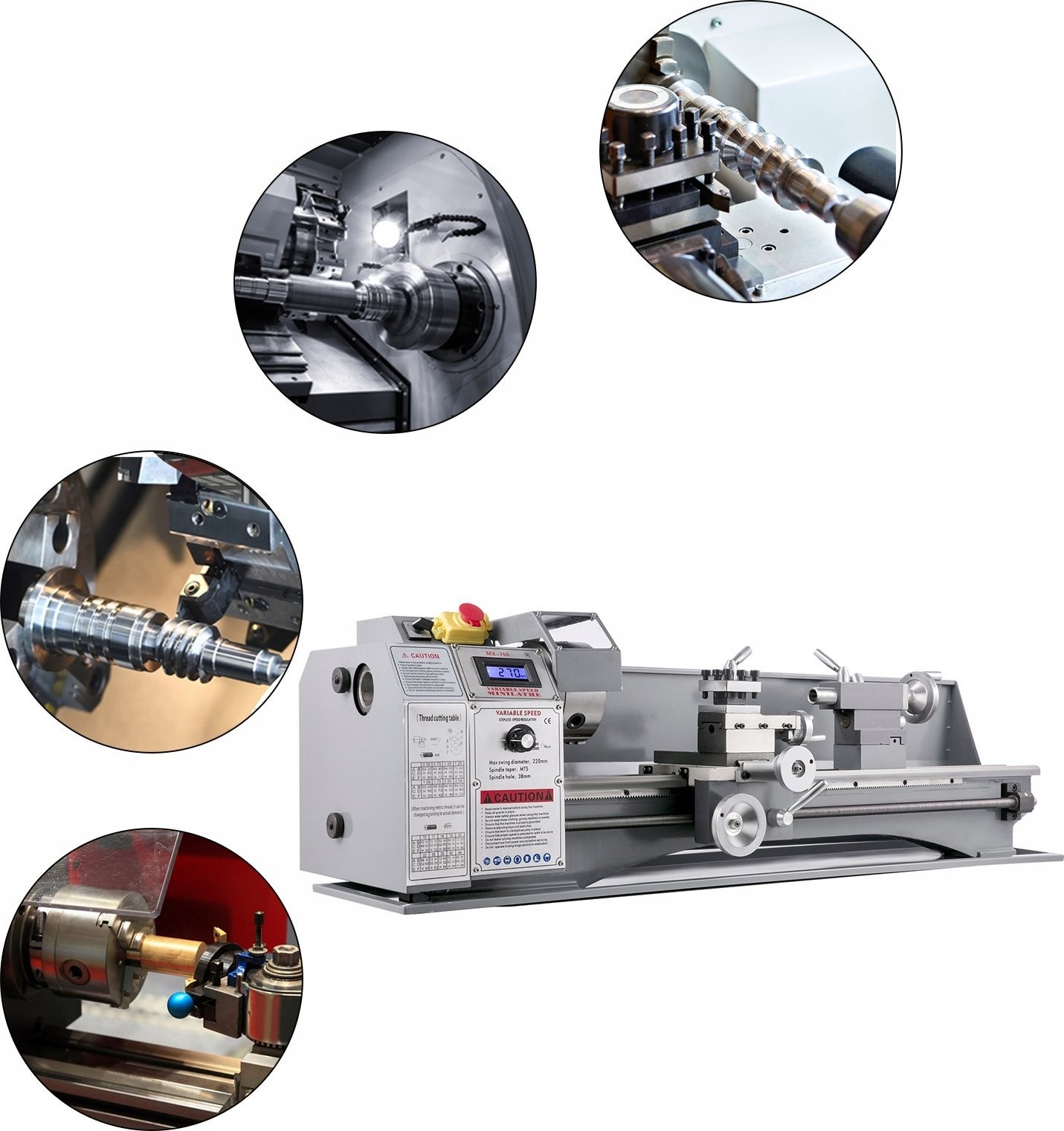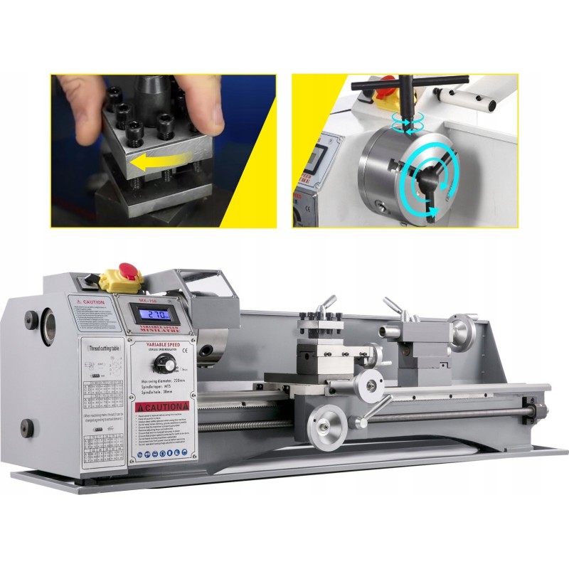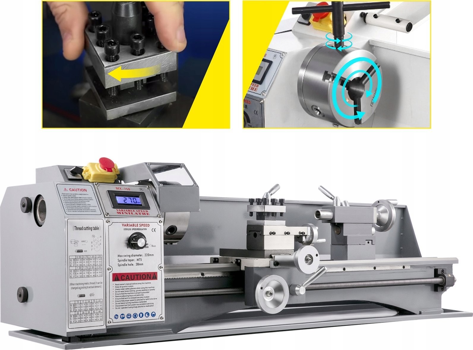 - Die präzise Mini-Metall-Drehmaschine mit den Abmessungen 220 x 750 mm verfügt über einen 1,1-kW-Motor, eine Dreifach-Spannzange, einen MT5-Spindelkonus und einen MT2-Reitstockkonus. Sie ist für verschiedene Arten der Metalldrehung ausgelegt und einfach zu bedienen.