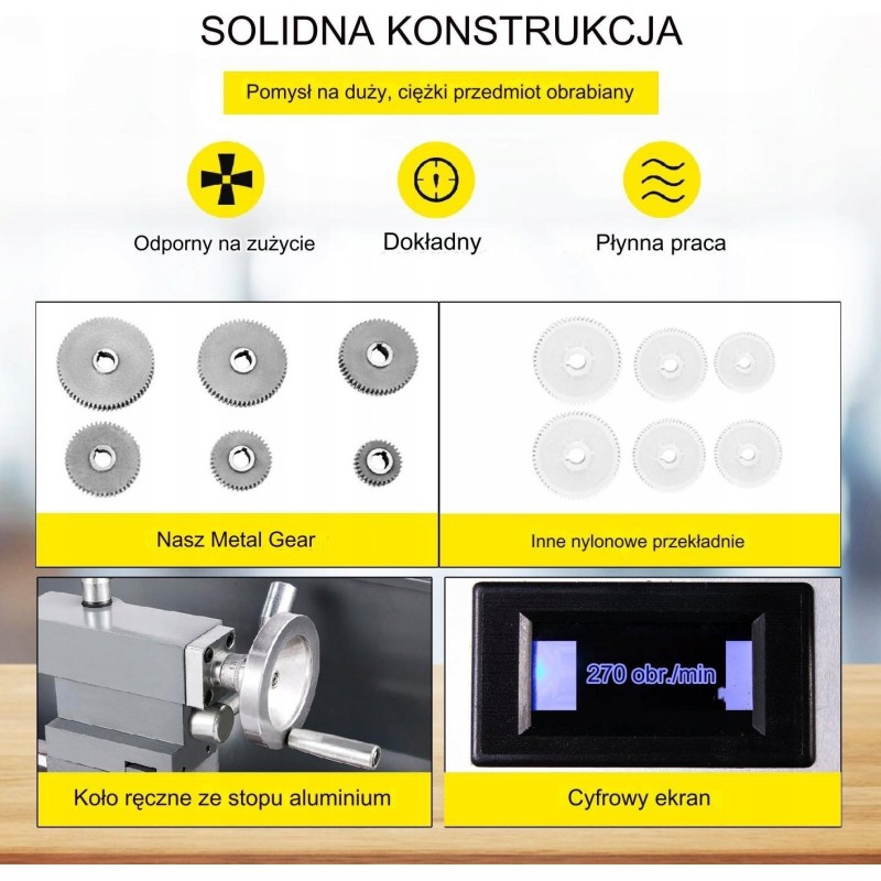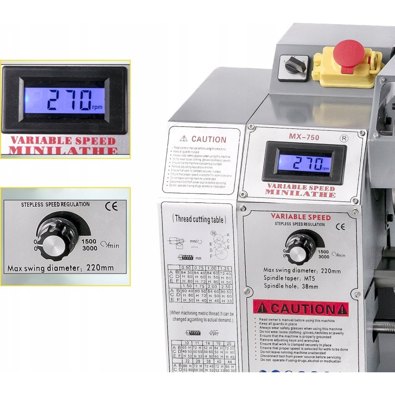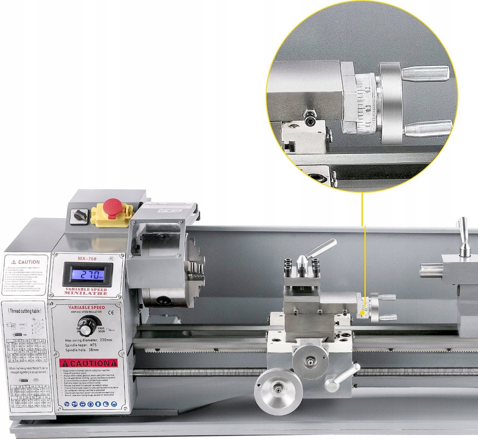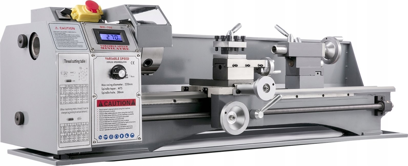 - Die präzise Mini-Metall-Drehmaschine mit den Abmessungen 220 x 750 mm verfügt über einen 1,1-kW-Motor, eine Dreifach-Spannzange, einen MT5-Spindelkonus und einen MT2-Reitstockkonus. Sie ist für verschiedene Arten der Metalldrehung ausgelegt und einfach zu bedienen.