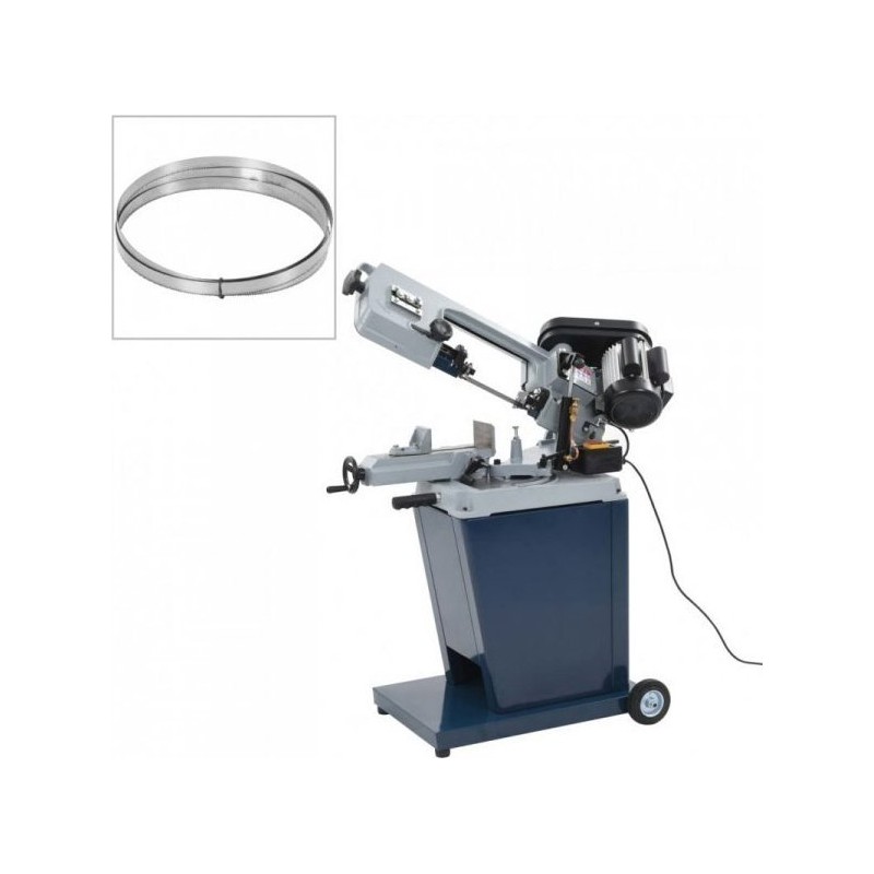 Diese schwenkbare Bandsäge hat eine maximale Schnitthöhe von 100 mm und eine Schnittbreite von bis zu 150 mm. Sie schneidet mit einer Geschwindigkeit von 55 m/min und verfügt über einen einstellbaren Schnittwinkel von 105°, was einen breiten Anwendungsbereich und hohe Flexibilität ermöglicht. Dank der 3-stufigen Geschwindigkeitsregelung ist diese elektrische Bandsäge einfach zu bedienen und zu handhaben, ermöglicht das Schneiden verschiedener Materialien und sorgt für glatte Schnitte. Darüber hinaus sorgt das scharfe TPI 14-Sägeblatt für maximale Leistung des Werkzeugs. Die robuste Stahlkonstruktion verleiht der Bandsäge Stabilität und Langlebigkeit.
